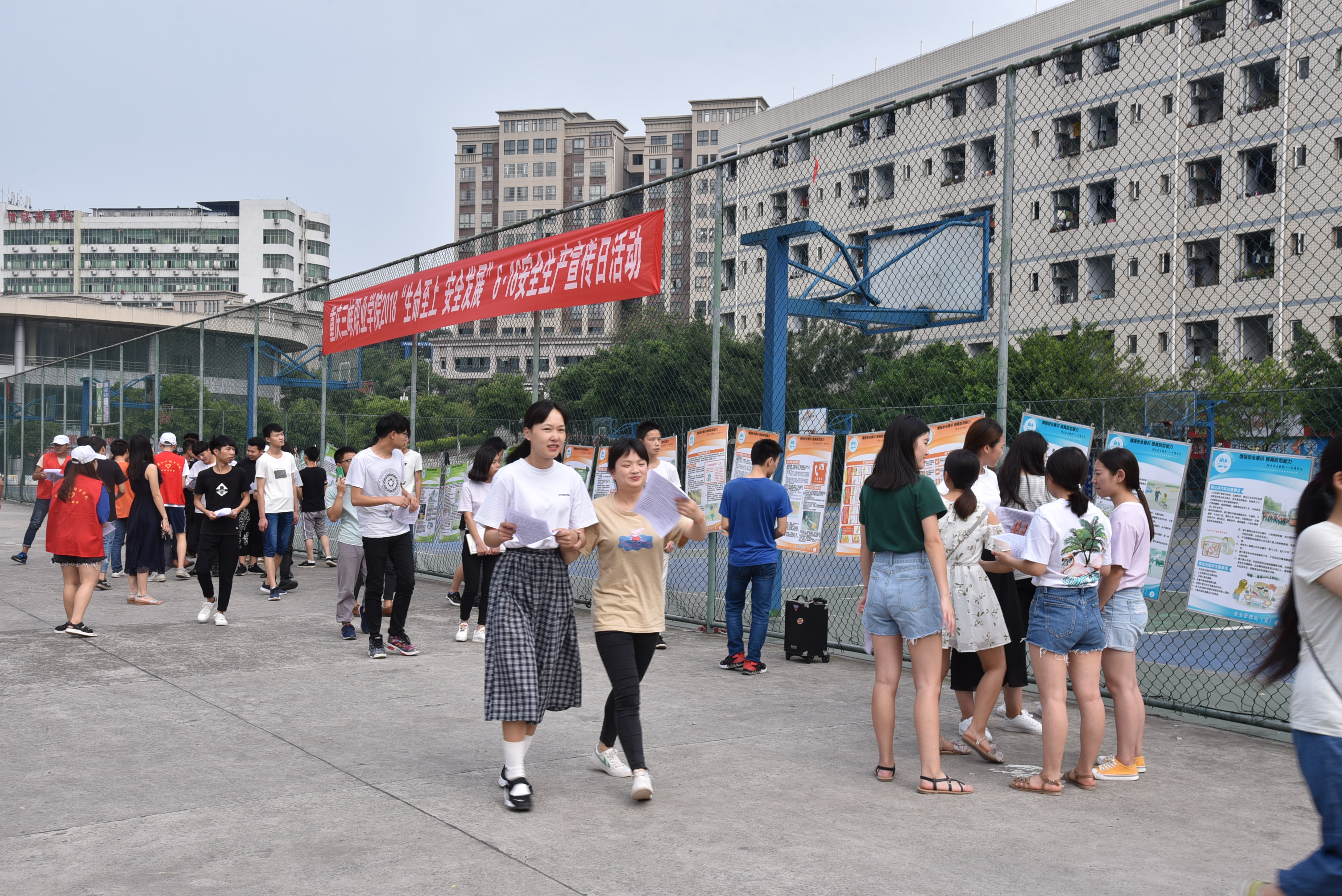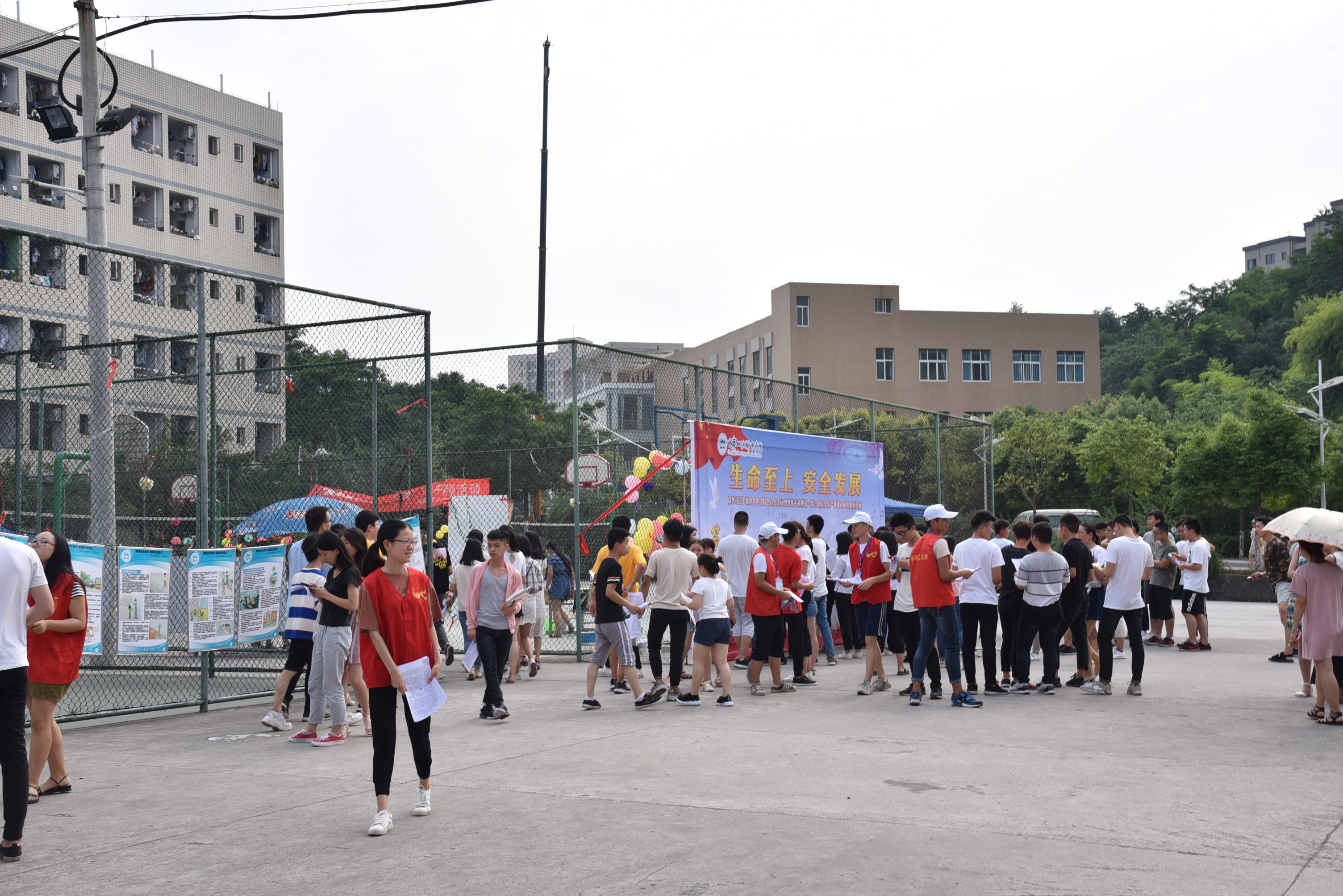 为大力弘扬“生命至上、安全发展”的思想,增强师生安全意识和防灾减灾能力,在“6.16”安全宣传咨询日来临之际,安全处会同院团委和6个教学系于2018年6月14日下午篮球场举办了“6.16”安全宣传咨询日暨安全生产渝州行活动,学院1000余师生参加了活动。