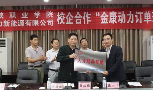 授牌仪式上,学院副院长杨建宏代表学院致辞,希望双方以开办订单班为契机,加强校企合作,助力人才培养,实现资源共享,促进双方共赢。总经理徐小川表示,将搭建合作交流平台,与学院共同致力于新能源汽车人才的培养,促进专业建设、人才培养与社会需求、行业发展接轨。最后双方代表签订“金康动力订单班合作协议”并互相授牌。