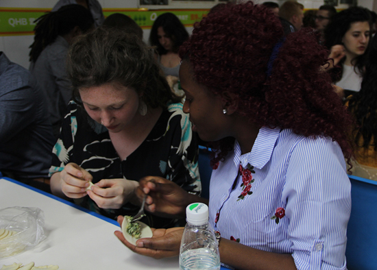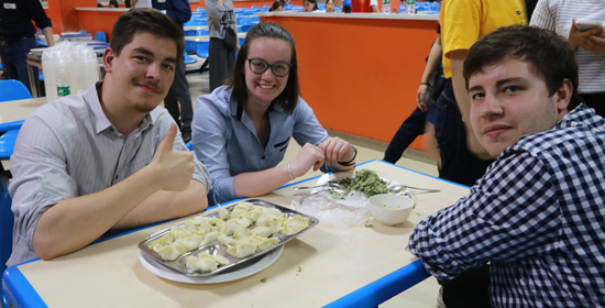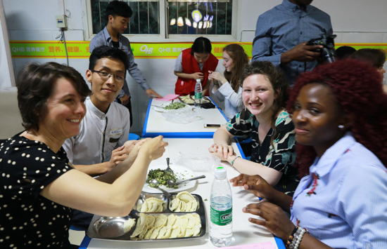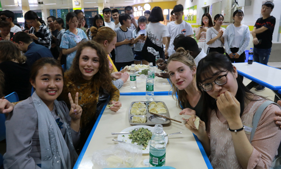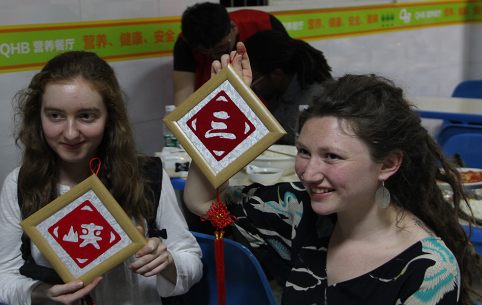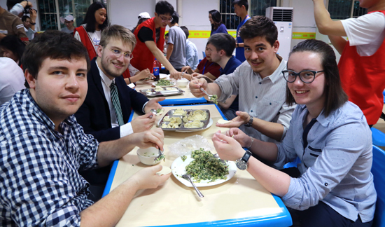 为了帮助比利时朋友们更好体验中国饮食文化,学院大学生志愿者们和外国友人们一起举行了包饺子活动,比利时的同学们都对亲手包中国饺子、体验中国传统饮食文化表示出极大的热情,志愿者们亲自示范,外国友人们学得有模有样,经过大家的共同劳动,一个个晶莹剔透的饺子很快就呈现在大家面前,现场洋溢着温馨、祥和、喜悦的气氛。尝到自己亲手包出的中国饺子,外国友人禁不住竖起了大拇指。在剪纸活动中,心灵手巧的比利时小伙伴们剪出了“三峡”字样,别具美感。