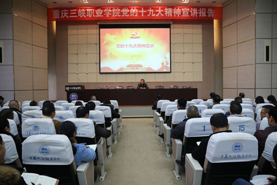 12月12日,学院党委书记陈章在学院党委中心组学习(扩大)会议上宣讲十九大精神,同时结合学院发展,陈书记对如何将十九大精神在学院工作中落小落细落实,提出了具体的工作部署和工作要求,对标对表中央精神,提出了学院发展新征程的目标、路径和时间表。学院中层干部、总支书记、总支委员、支部书记、各教研室主任近100人参加了报告会。