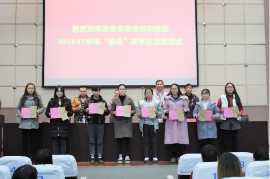 会上,农林科技系副主任丁廷发介绍了“燕化”奖学金背景及评定标准。农林科技系党总支书记肖霞宣读“燕化”奖学金表彰决定。夏宇等4名同学荣获一等奖学金,彭丽等8名同学荣获二等奖学金,龙欢等12名同学荣获三等奖学金,与会领导及嘉宾为获奖同学颁奖。随后,赵学才总裁发表讲话,对获奖学生表示祝贺。他表示,公司与农林科技系开展就业合作并设立企业奖学金六年来,农林科技系毕业生专业技能扎实、综合素质突出,不少毕业生通过努力已经成为“燕化”的管理人员和骨干力量。夏宇同学代表获奖学生发言,她表示将不辜负企业和学校的厚望,勤奋学习,立志成才,以优异的成绩回报学校、回报企业、回报社会。