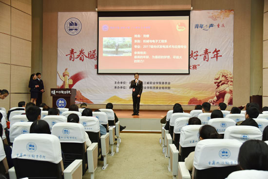 机电系2015级电子信息工程技术团支书官任莉同学,重庆市团支部书记岗位实践能力大比武一等奖获得者,进行了《让信仰点亮人生》的汇报发言,和大家分享了自己的比赛历程和心得体会,让在座的团员青年们进一步明确了今后工作和学习的前进方向。