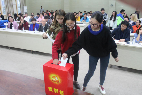 会议第一项由团支部书记宣布到会人员情况和“推优入党”程序,随后全体起立奏唱团歌,辅导员吴琼老师向全体团员阐述了入党的重要意义和推优入党的标准及要求。四名被推荐对象依次上台就自己的入党动机及思想、学习、工作和生活表现情况进行汇报,每名推荐对象汇报后与会团员、辅导员和入党介绍人还积极对其进行民主评议,既肯定优点又指出不足。大会最后进入民主推荐环节,与会团员认真填写民主推荐表,经过公开透明的唱票记票阶段,民主推荐的结果将作为党组织确定入党积极分子的重要依据。