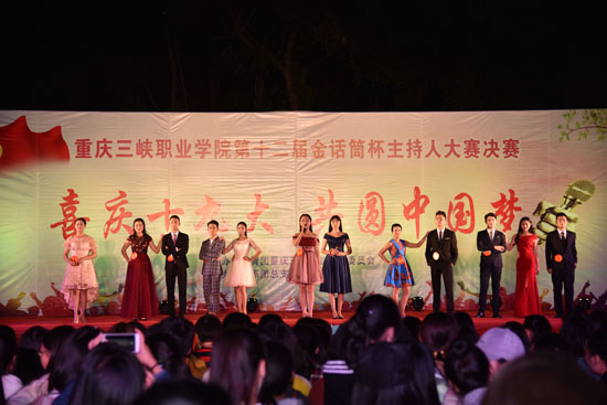 11月16日晚,我院第十二届“金话筒”校园主持人大赛决赛在羽毛球场圆满举行。学院副院长杨建宏、学生处处长熊江、学生处副处长黄莉、各系团总支书记、万州各高校学生会代表及六百余名学生应邀出席。