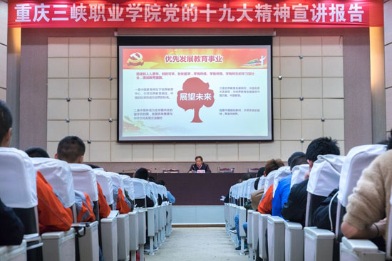 11月17日,重庆市学习贯彻党的十九大精神进校园宣讲分队成员、学院党委书记陈章对农业机械与车辆工程系300多名师生宣讲十九大精神。