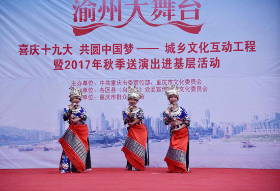 11月14日下午,由重庆市委宣传部、市文化委主办的“喜庆十九大共圆中国梦——城乡文化互动工程暨2017年秋季送演出进基层活动”在我院羽毛球场隆重上演,为全院师生献上了一台精彩纷呈的文艺演出。