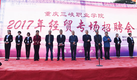 11月9日上午,2017年三峡职业学院经贸专场招聘会在学院隆重举行。来自北京、上海、广州、深圳等一线城市,江苏、浙江、四川、重庆等周边城市的130多家企业来校遴选人才。学院党委委员、副院长张智、赵福奎,学院党政办、学生处、经贸系等部门负责人出席会议。会议由就业处谭军处长主持。