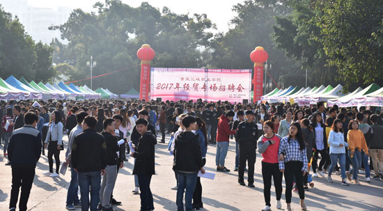 本次招聘会涉及经营管理类、市场营销类、航空服务类、销售类、房地产类、人力资源类、物流类、会计类、酒店餐饮旅游类、教育培训类等多个类别,提供了近3600余个岗位,我校2017届毕业生人均有4.5个岗位可供选择,学生足不出户,就能找到心仪的岗位。此前,经贸系已提前举行了近30场专场招聘会。据不完全统计,招聘会当天签约率达到约70%。
