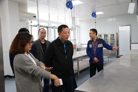陈章书记随后到农林楼“好利来烘焙实训中心”,查看中心建设进展。位于农林楼一层的烘焙中心,处于建设后期阶段,各种中西点烘焙设施已经到位,功能布局合理,设施设备新式齐全,符合学生实习实训需要,陈章书记表示,系部要进一步加强和企业的沟通,根据教学实训需求,力争打造一个集现代、科技、实用于一体的绿色烘焙中心。