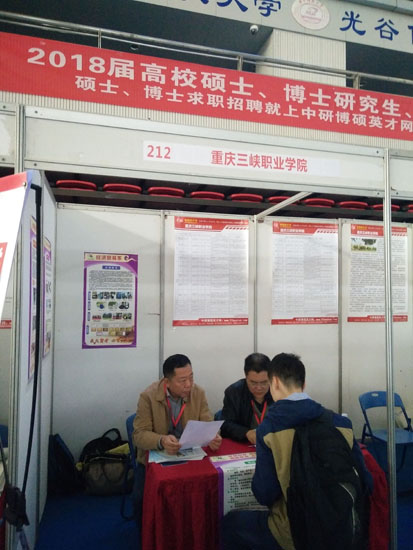 我院是重庆唯一一所参会高校。部分学生被重庆魅力深深吸引,前来我院展台咨询、投简历的学生络绎不绝,陈章书记一行耐心、细致地给应聘的学生介绍学校情况、专业设置、招聘岗位要求、工资待遇等。