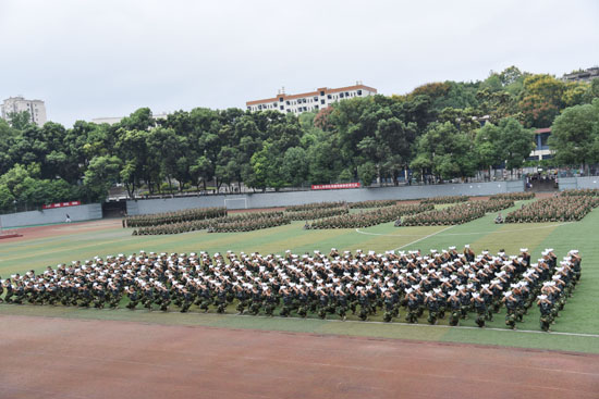 9月22日上午8点半,我院2017级新生军训汇报表演暨总结表彰大会在学院运动场隆重举行。学院全体院领导、承训部队领导以及学院中层干部等在主席台观看了表演。全体承训教官、辅导员和2017级2600余名新生参加大会。大会由副院长杨建宏主持。