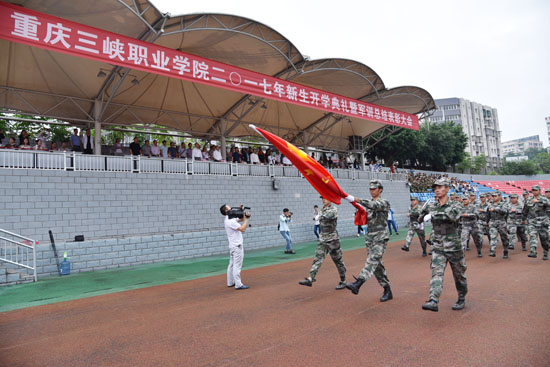 在庄严的国歌声中,五星红旗冉冉升起。随后,2017级全体新生带来了精彩的分列式汇演。当整齐划一的列队经过主席台时,同学们英姿飒爽、斗志昂扬,坚定的步伐、整齐的队列和嘹亮的口号,展现出的朝气蓬勃、奋发向上的当代大学生精神风貌,赢得了全场的热烈掌声。