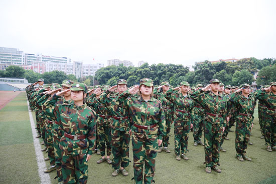 学院院长杨和平发表讲话。他肯定了本次军训成果,同时表达了对承训全体教官的感谢,祝贺同学们顺利完成了军训任务。同时,他对2017级全体新生提出了几点殷切的希望。他说,同学们一要树立信心,用梦想成就职场人生;二要立德修身,用行动磨砺优秀品行;三要脚踏实地,用勤奋成就一番事业。他希望大家珍惜三年大学时光,自律自强,“人心聚学”,永远保持主动学习的热情,保持勤奋刻苦的品质。他勉励大家磨练意志,砥砺品格,练就本领,增长才干,为实现青春梦想打下坚实的基础。