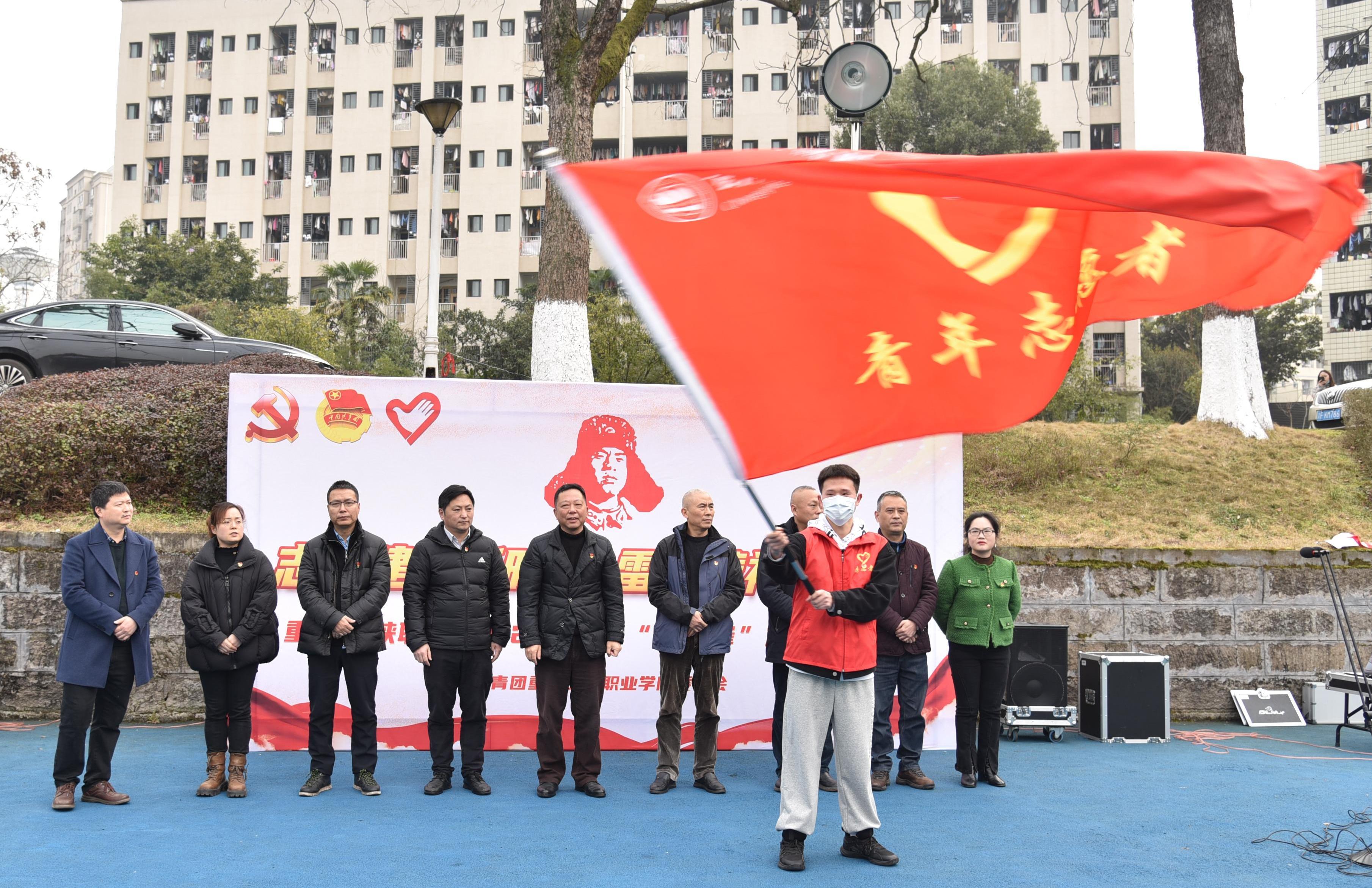 陈章书记为“学雷锋”志愿服务月活动授旗。