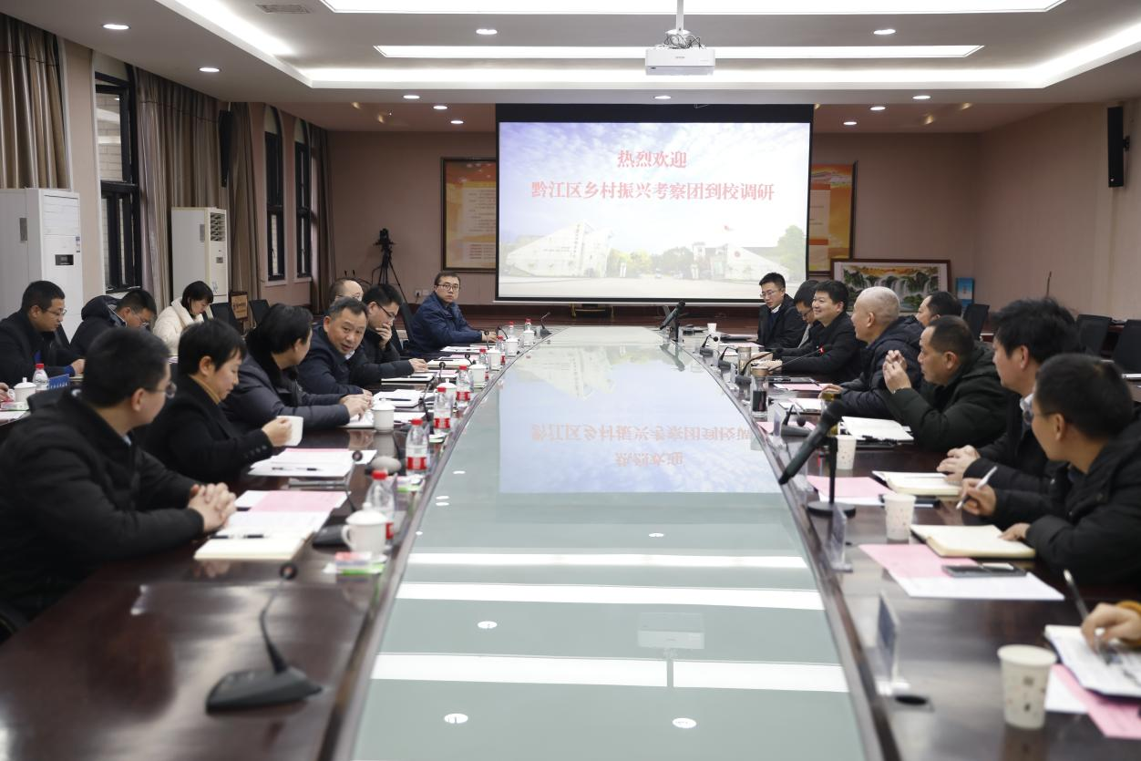 1月20日,黔江区委教育工委书记 区教委主任米仁文、黔江区乡村振兴局党组书记 局长钟伟一行到我院考察调研乡村振兴工作,学院党委书记陈章出席座谈会。党委委员、副院长赵福奎主持会议。