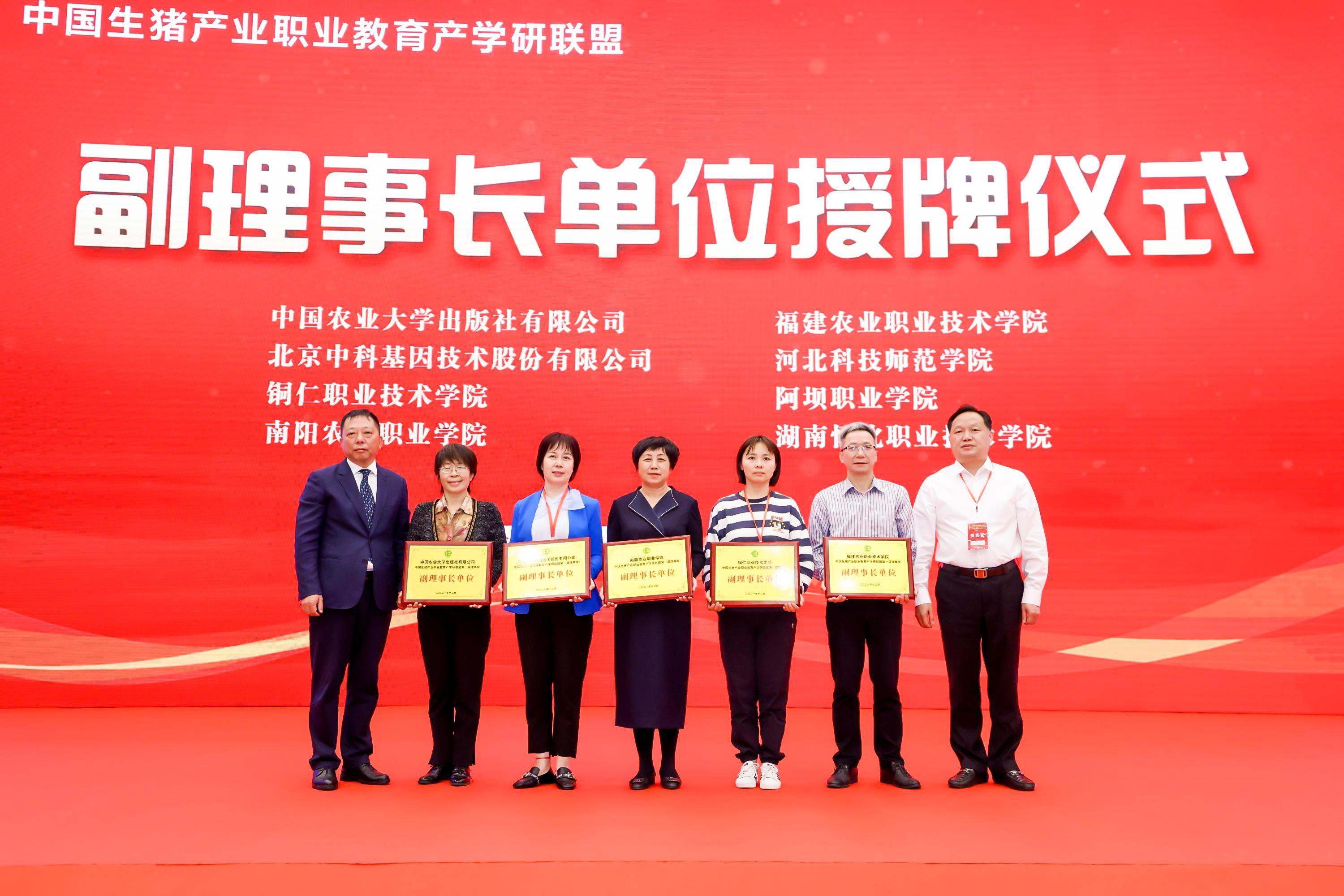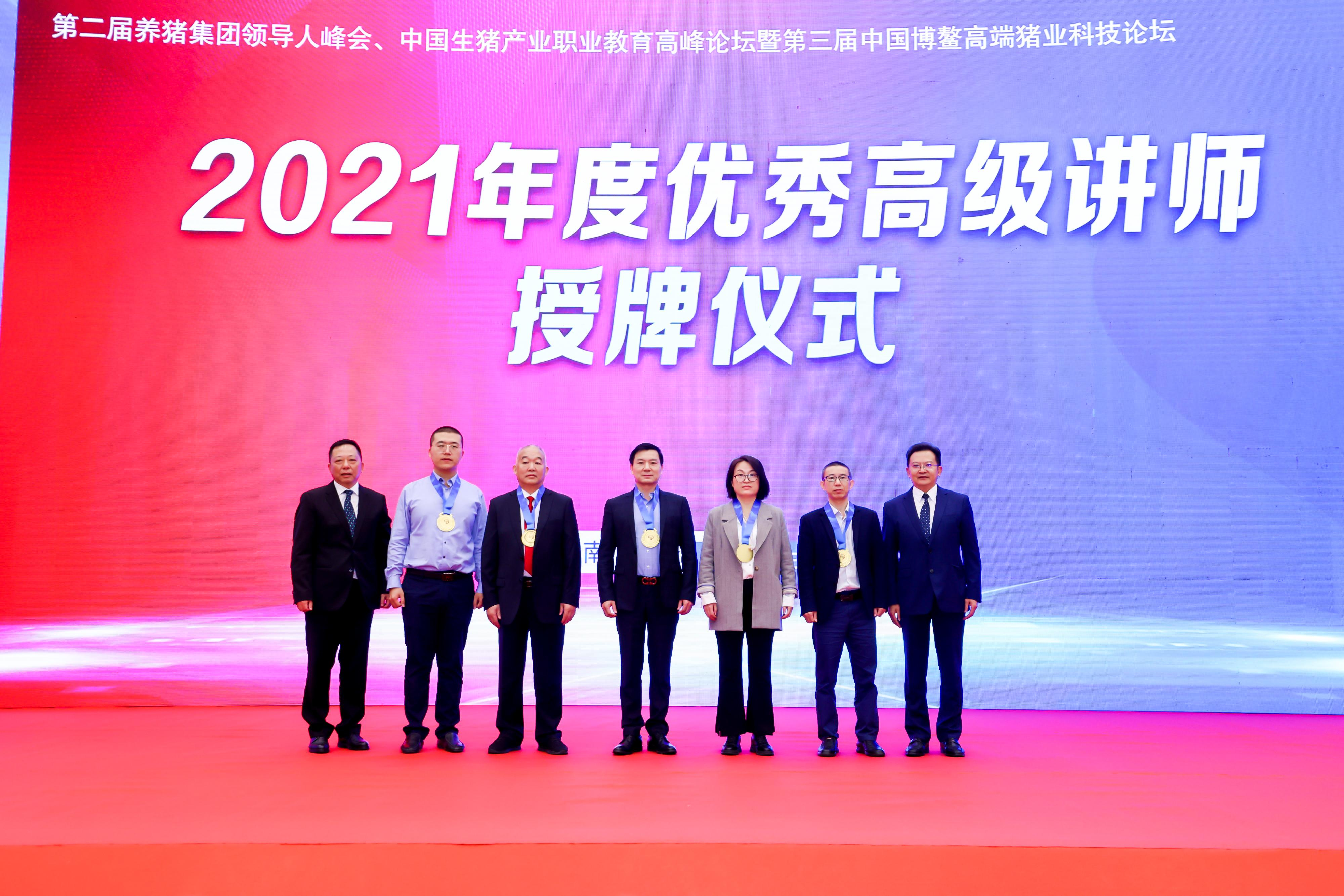 学院党委书记陈章还受邀为中国博鳌高端猪业科技论坛组委会2021优秀高级讲师和中国生猪产业职业教育产学研联盟新增理事单位授牌。