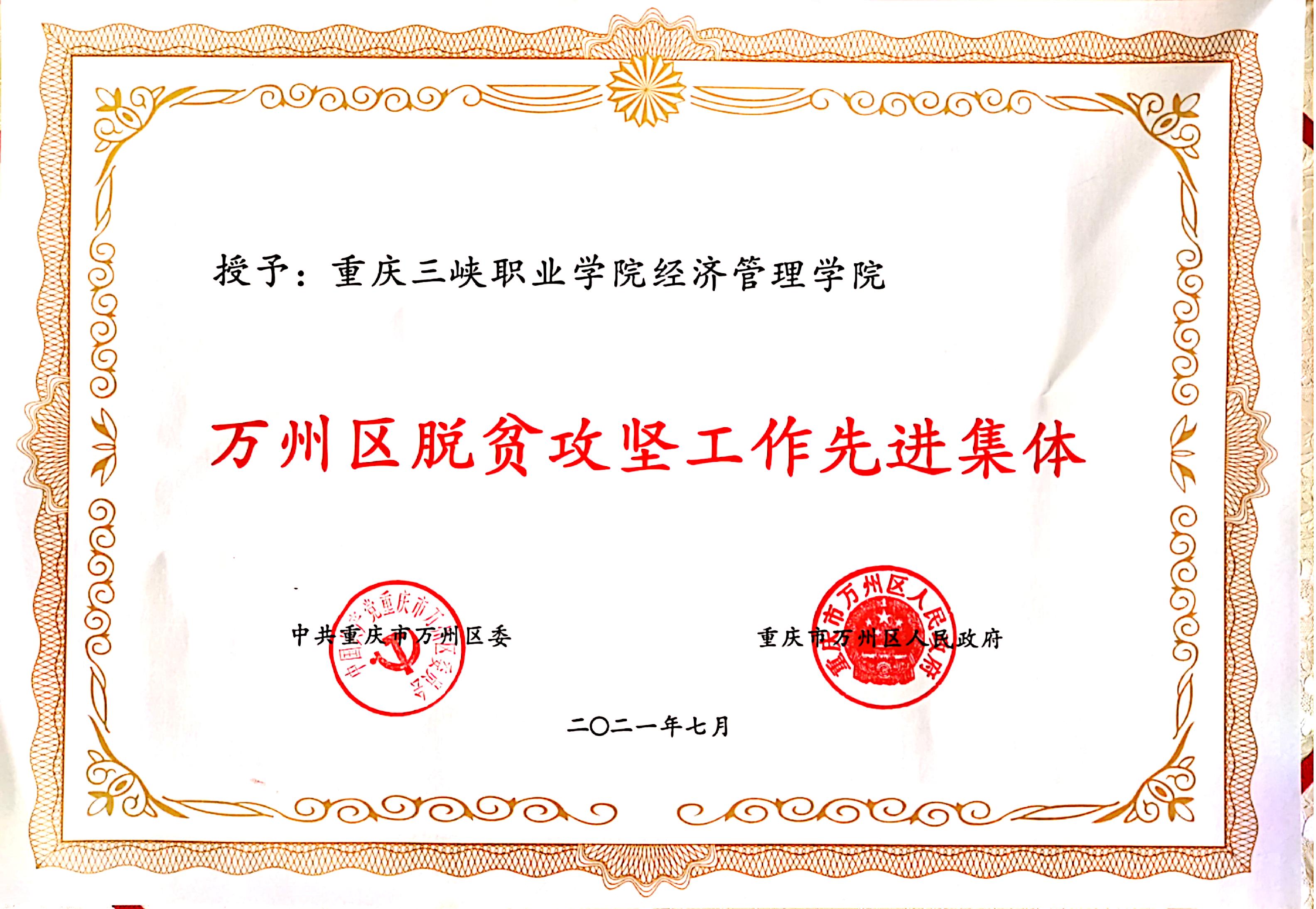 近日,万州区脱贫攻坚领导小组发布2021年全区脱贫攻坚奖获奖名单,我院经济管理学院荣获“万州区脱贫攻坚工作先进集体”荣誉称号,在全区获得“脱贫攻坚工作先进集体”的50个集体中,我院经济管理学院是唯一获得此项殊荣的高校代表。