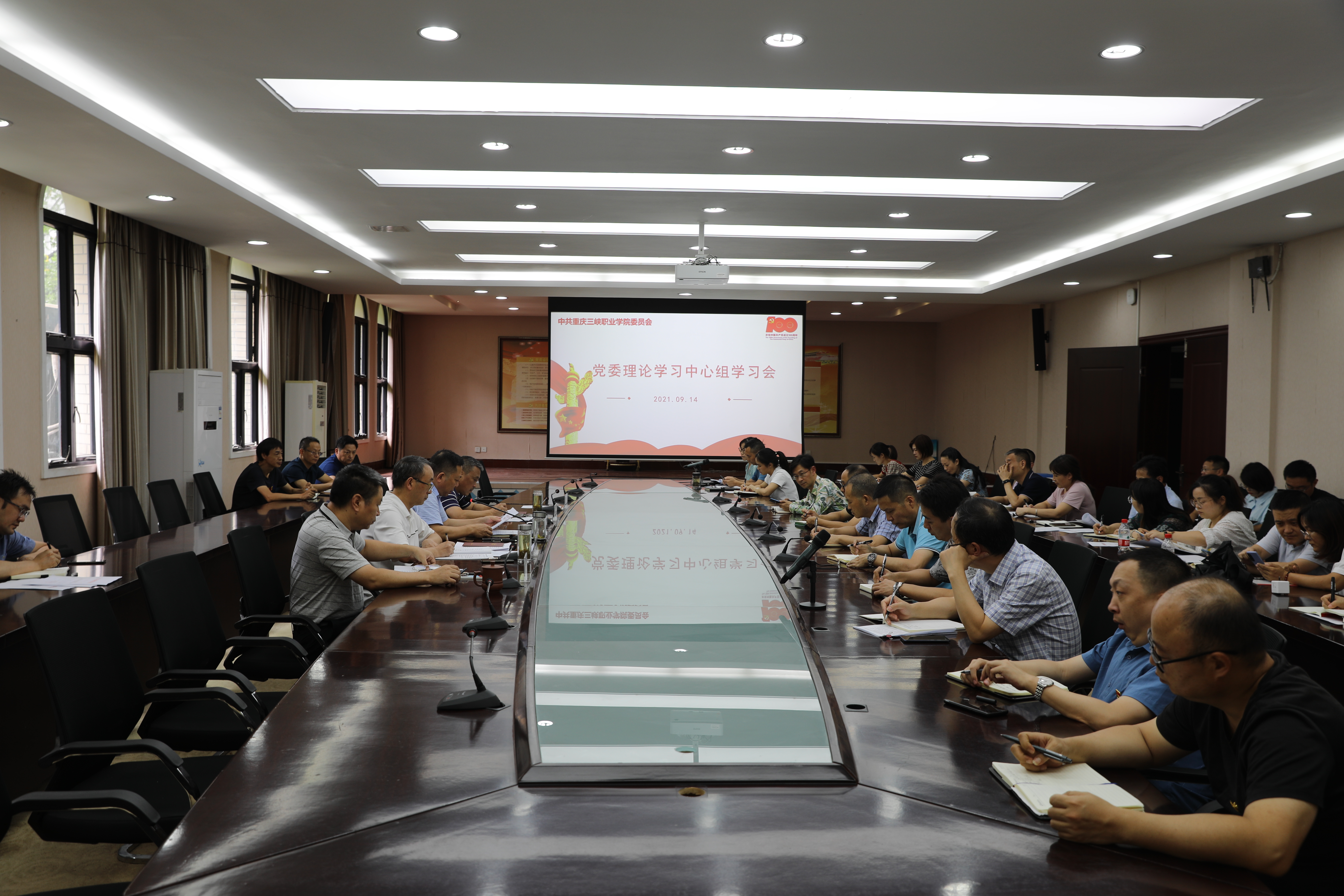 9月14日下午,学院党委理论学习中心组(扩大)会议在行政楼303会议室召开。学院在家院领导、全体中层干部参加了会议,学院各民主党派、知联会负责人列席了会议。会议由党委书记陈章主持。