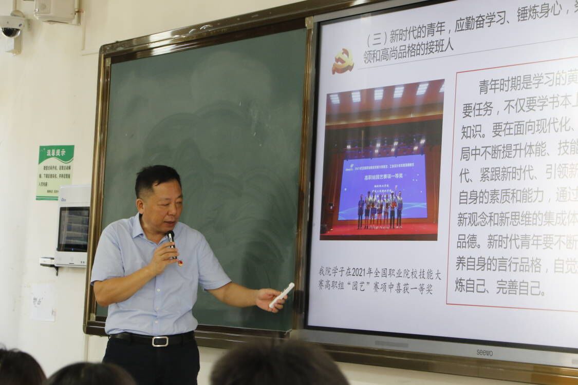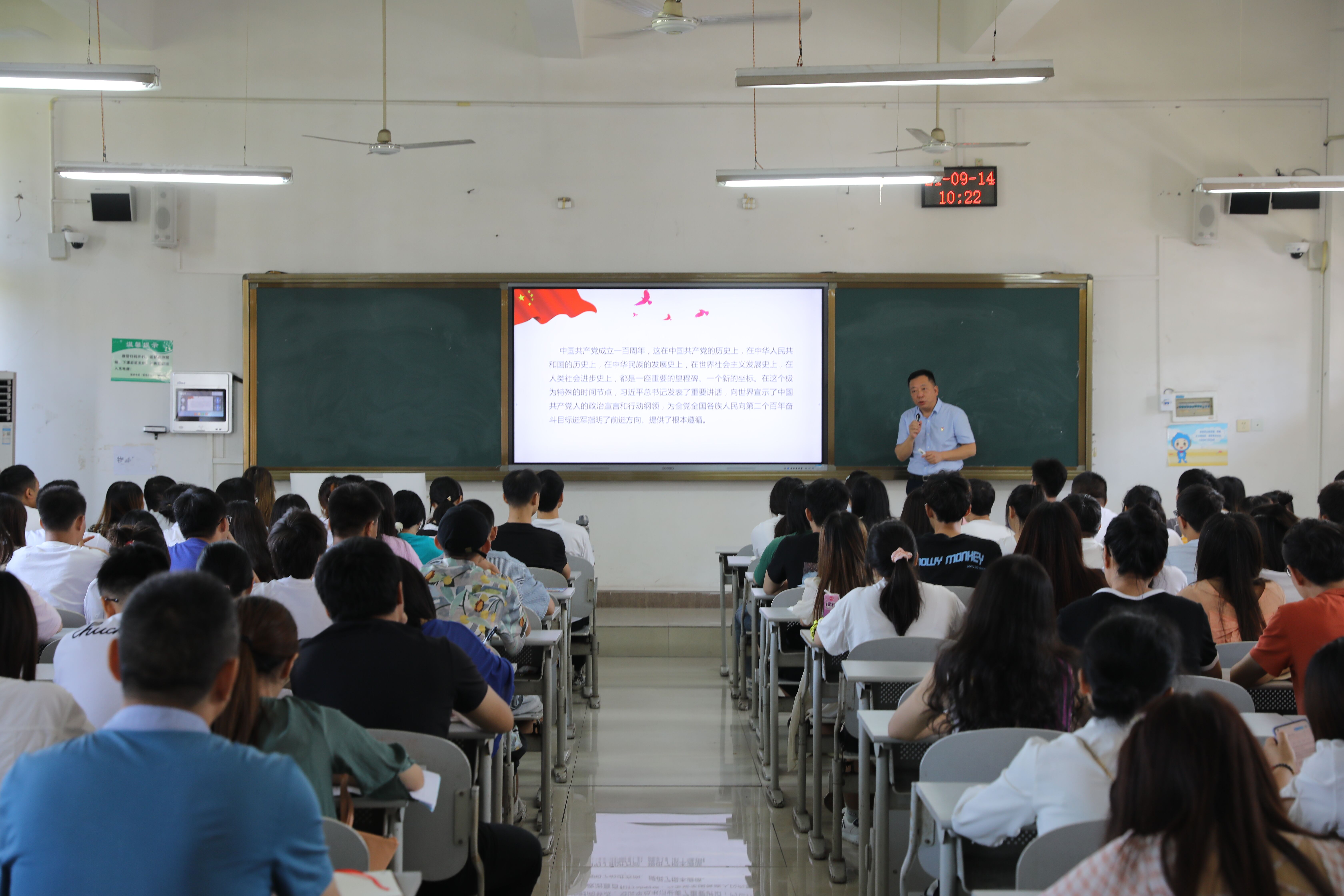 9月14日上午,市委教育工委“七一”重要讲话宣讲分队成员、学院党委书记陈章为我院师生开展第一场习近平总书记在中国共产党成立100周年纪念大会上的重要讲话精神宣讲正式开讲。动物科技学院2020级动物检验检疫专业学生在博雅楼406教室现场聆听了宣讲。党委委员、宣传部部长、马克思主义学院院长姜荣主持宣讲会。