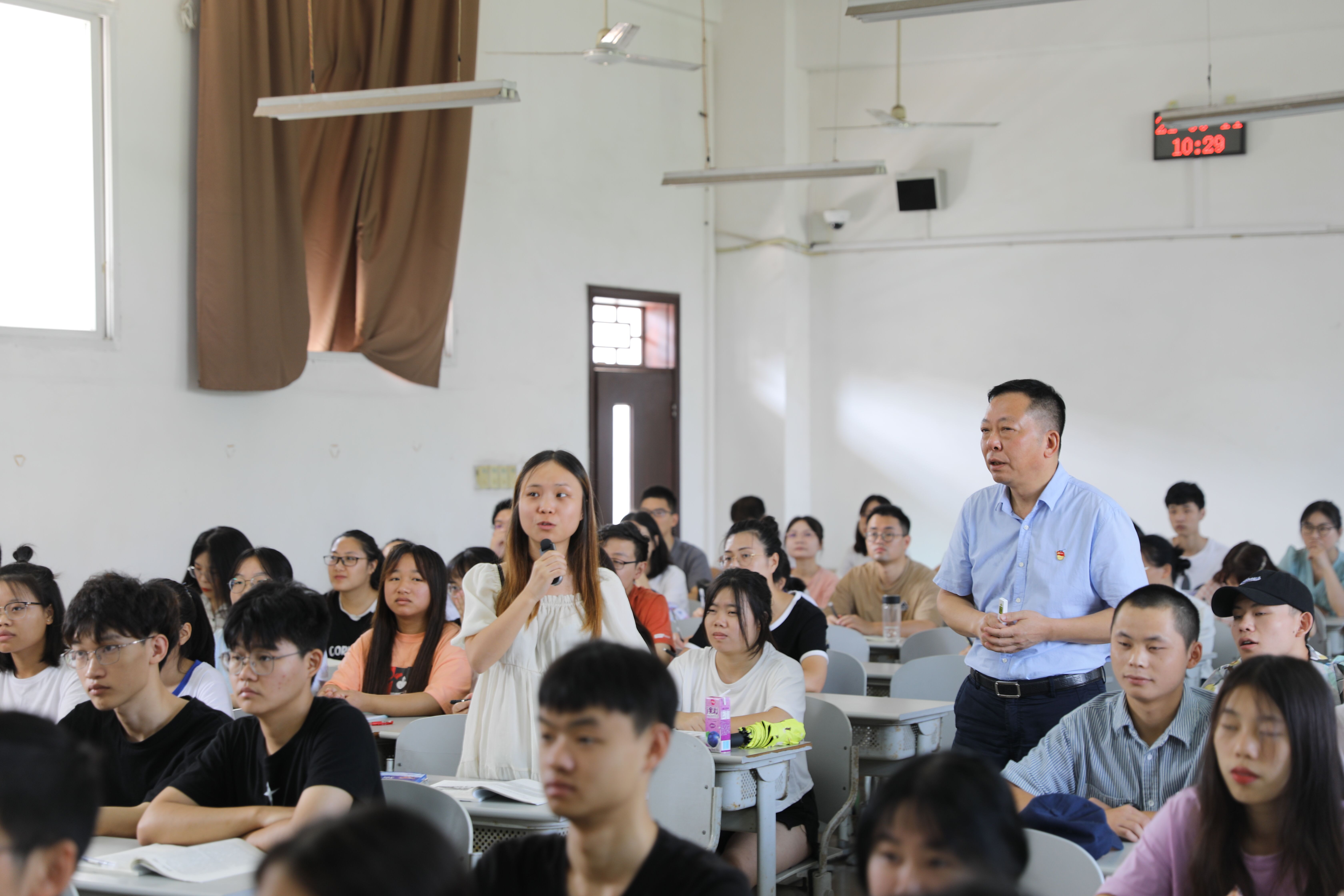 课堂上,陈章书记不时和学生们互动,引导学生更好理解讲话精神的精髓要义。课堂气氛活跃,在座学生听得认真,领会真切。同学们表示,这场宣讲来得及时,讲得透彻,通过宣讲自己更深入而准确地领会了总书记“七一”重要讲话精神,从而更加坚定理想信念,更加理解了当代青年大学生的使命担当和时代赋予的历史重任,决心将进一步把理论认识上升为行为实践,在日常学习生活中学本领、长才干、担使命、展风采。