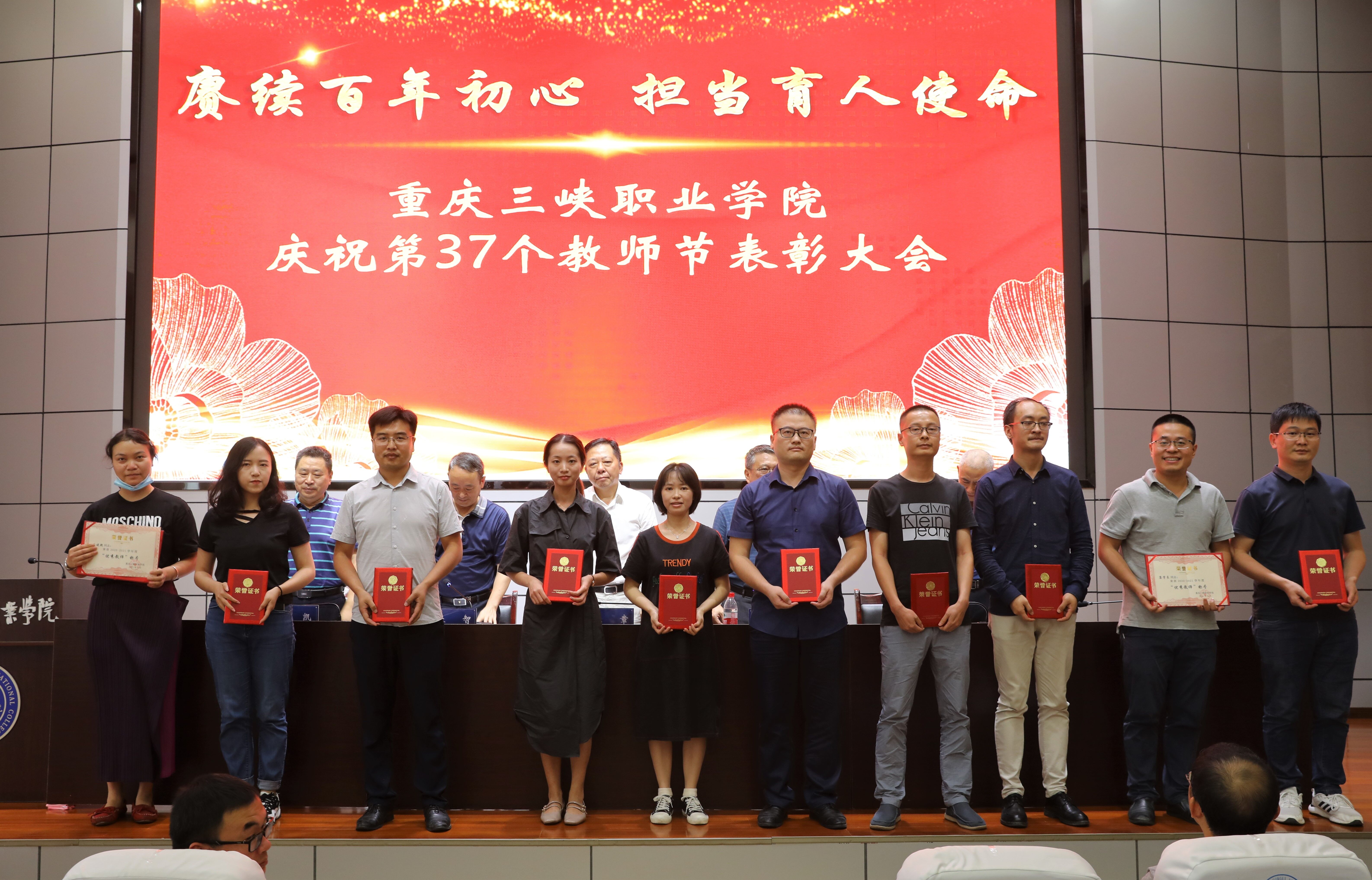 党委副书记张智介绍了2020年至今学院新进教师。院长李炯光宣读了《关于表彰从事教育工作逾30年教职工的通报》《关于表彰2020-2021学年度优秀教师和优秀教育工作者的通报》。在热烈的掌声中,学院领导为从事教育工作逾30年教职工、优秀教师和优秀教育工作者颁奖。
