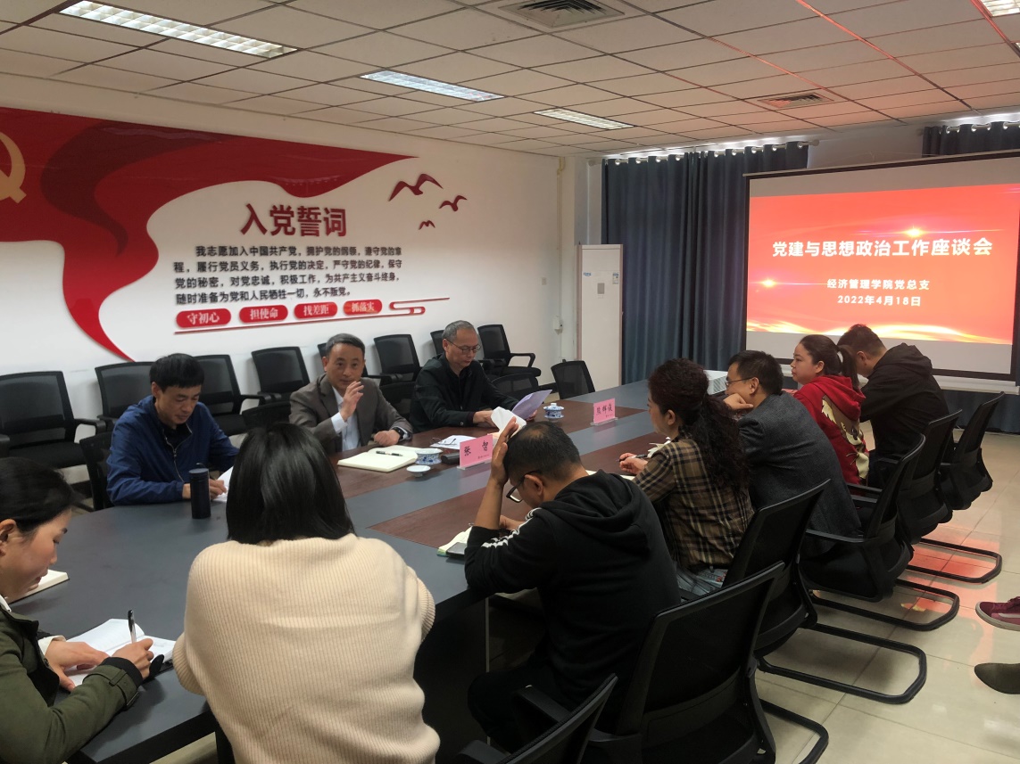 座谈会上,张恩广围绕经济管理学院“思露计划”实施过程中前期取得的成绩、后续工作安排作学生工作汇报。随后,赵琳代表经济管理学院党总支向张智副书记一行汇报了过去一年里党建与思想政治工作方面所取得的成绩、存在的不足和下一步的打算。赵琳表示,成绩代表过去,未来任重道远,在新校区建设的征程上,经济管理学院党总支将认真贯彻落实学院党委的各项工作部署,不打折扣、不搞变通,继续发挥经济管理学院党组织的战斗堡垒作用和党员的先锋模范作用,全力以赴、攻坚克难,努力推动沙龙校区各项工作更上台阶,以优异成绩向党的二十大胜利召开献礼。