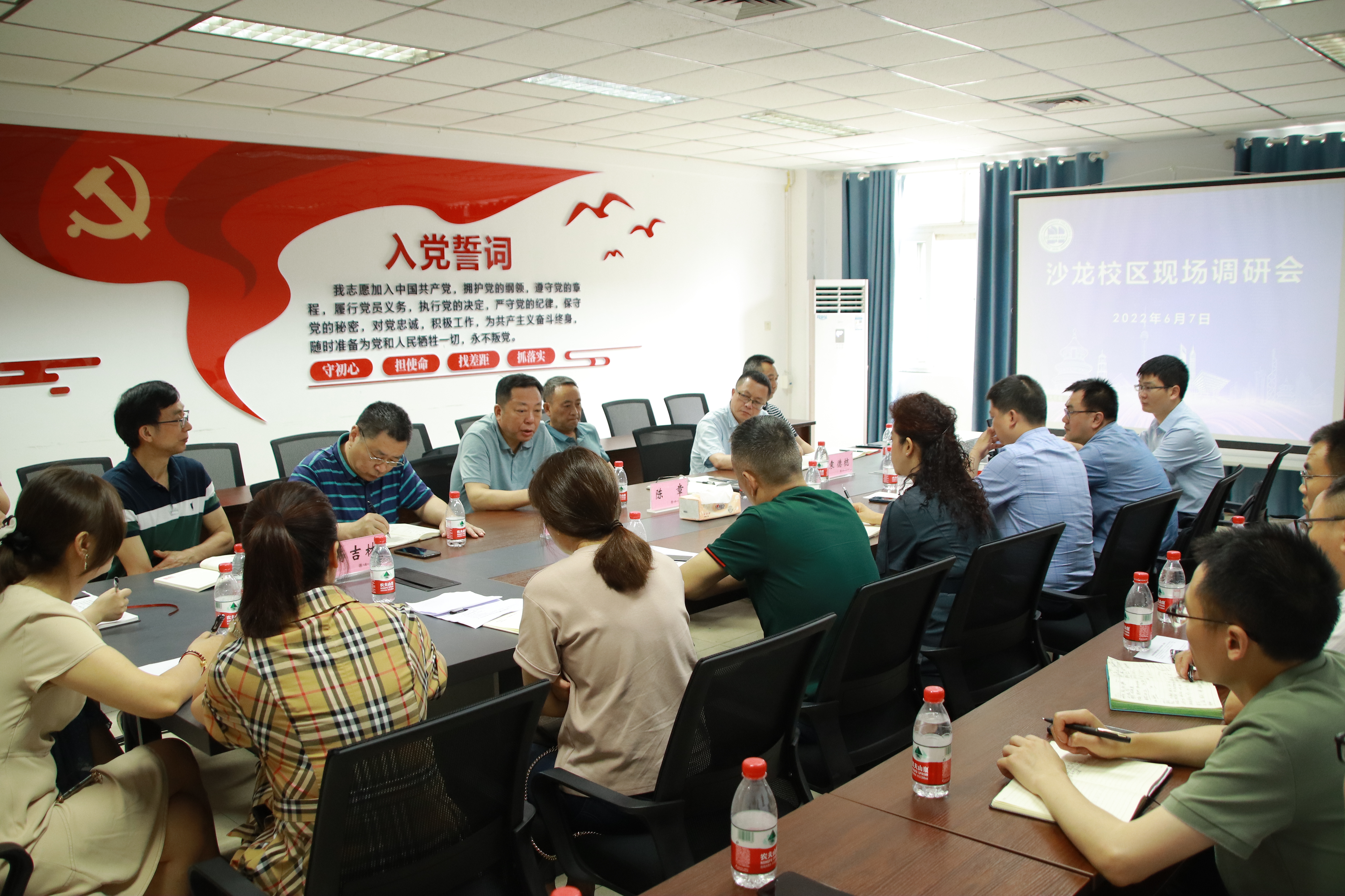 实地考察结束后,陈章书记一行回到综合楼会议室召开沙龙校区现场调研会。