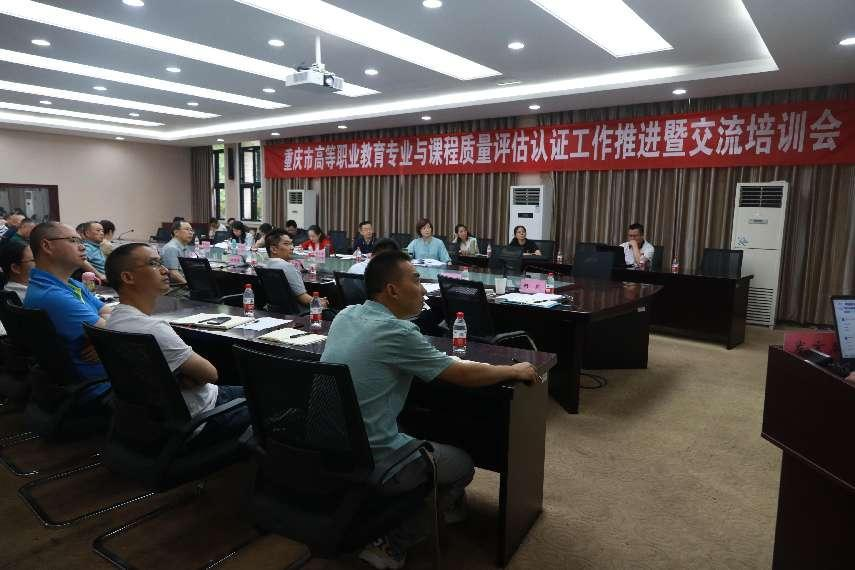 6月8日,我院承办的重庆市高等职业教育专业与课程质量评估认证工作推进暨交流培训会在行政楼303会议室召开。重庆市教育评估院副院长胡方、职成教评估所所长黄承国、认证项目负责人张媛媛、评估院外聘专家胡兴丽和陈艳平莅临我院参加了会议。我院党委副书记张智、各二级部门负责人、市级和校级各试点专业和课程负责人及相关老师参加了会议。会议由黄承国所长主持。
