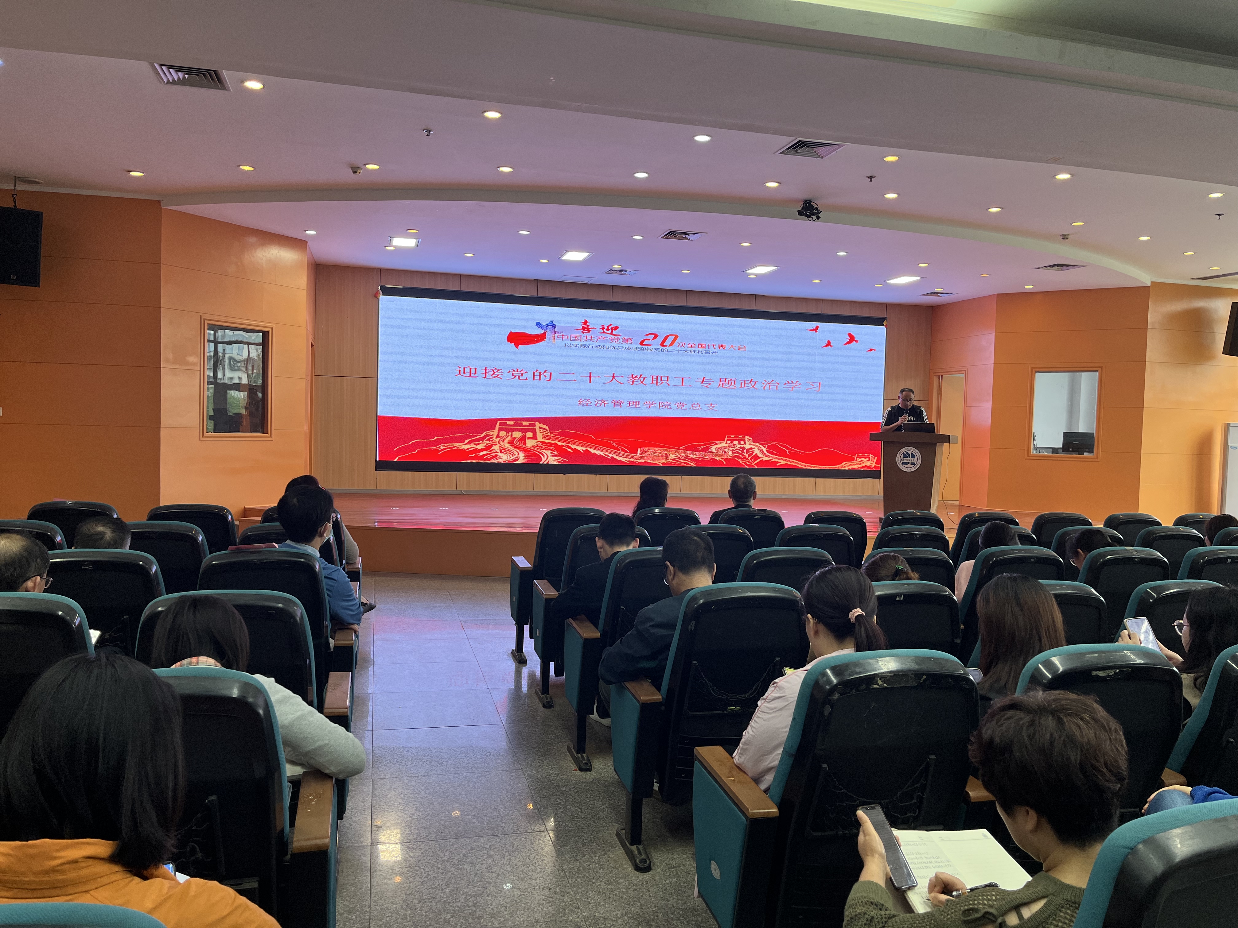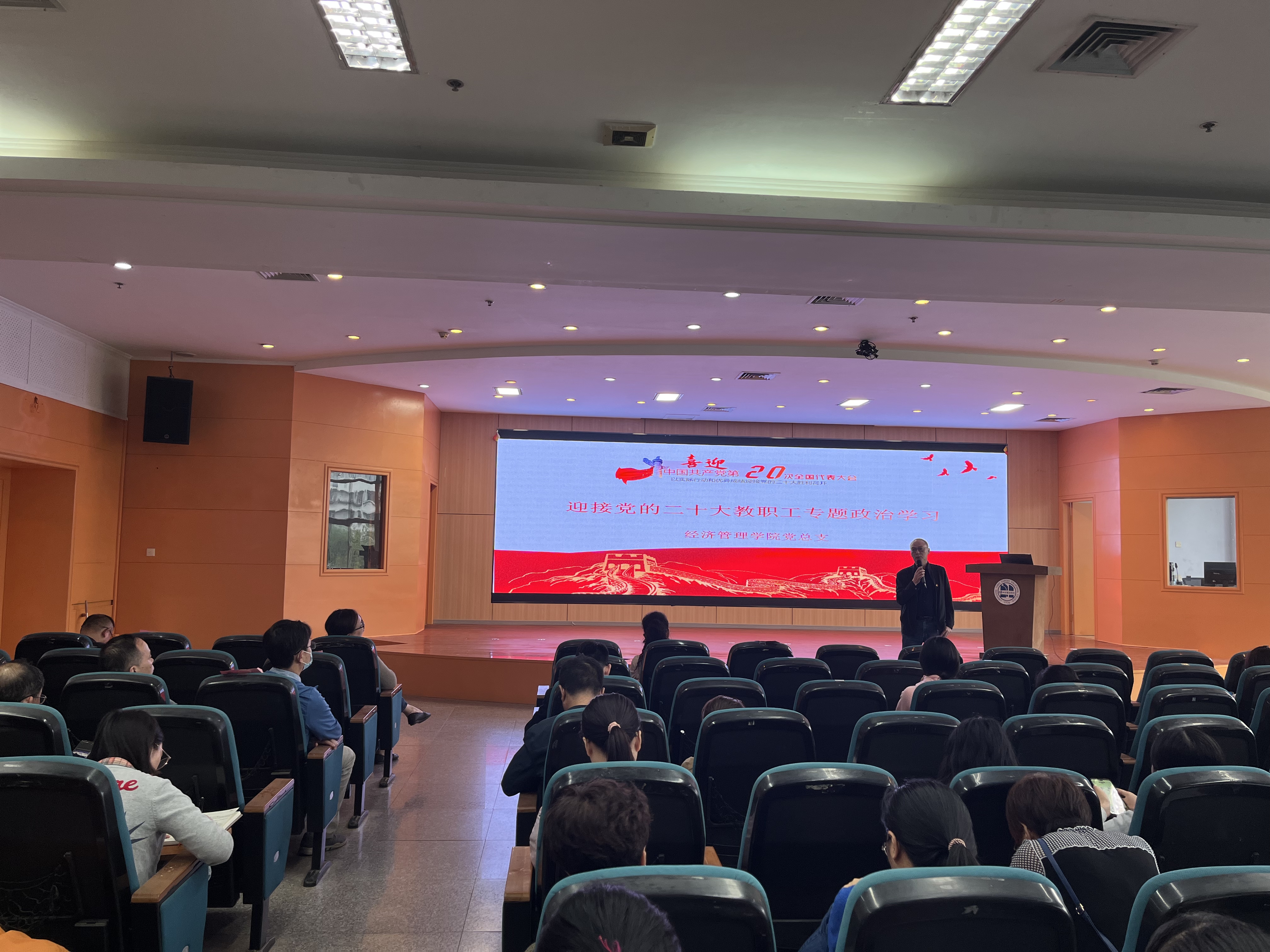 为深入学习习近平总书记重要讲话精神,强化教职员工思想政治引领,以奋发有为的精神状态和扎实的工作成效迎接党的二十大胜利召开。9月28日下午,经济管理学院党总支在沙龙校区综合楼学术报告厅举行迎接党的二十大教职工专题政治学习。学院全体教职工参加了学习,学习会由学院党总支副书记张恩广主持。