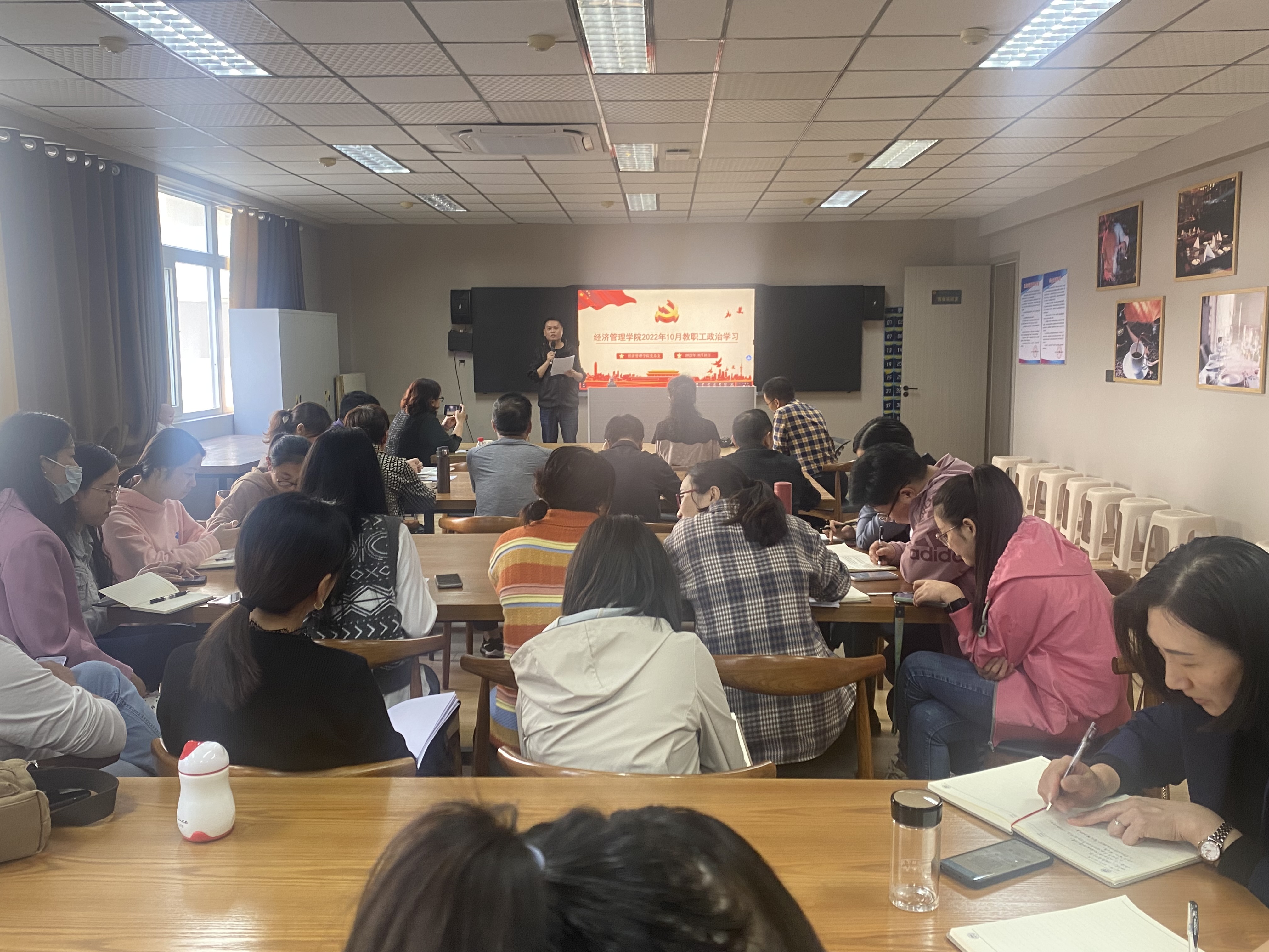 10月18日下午,经济管理学院在沙龙校区综合楼5楼西餐实训室开展10月教职工专题政治学习,会议由经济管理学院党总支书记、院长赵琳主持,学院全体教职工参加。