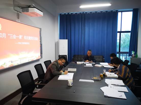 10月25日汽车工程学院党总支10月“三会一课”专题学习和主题研讨活动在汽车工程学院会议室举行。会议由汽车工程学院党总支书记夏平主持,支部全体党员参加。