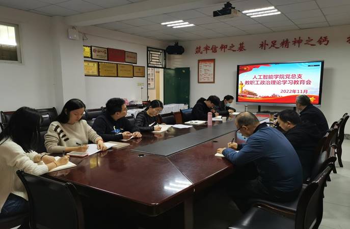 11月23日,人工智能学院党总支在信科楼503以线上线下相结合的形式召开11月教职工政治理论学习会。会议由党总支书记熊泽明主持,全院教职工40余人参加。