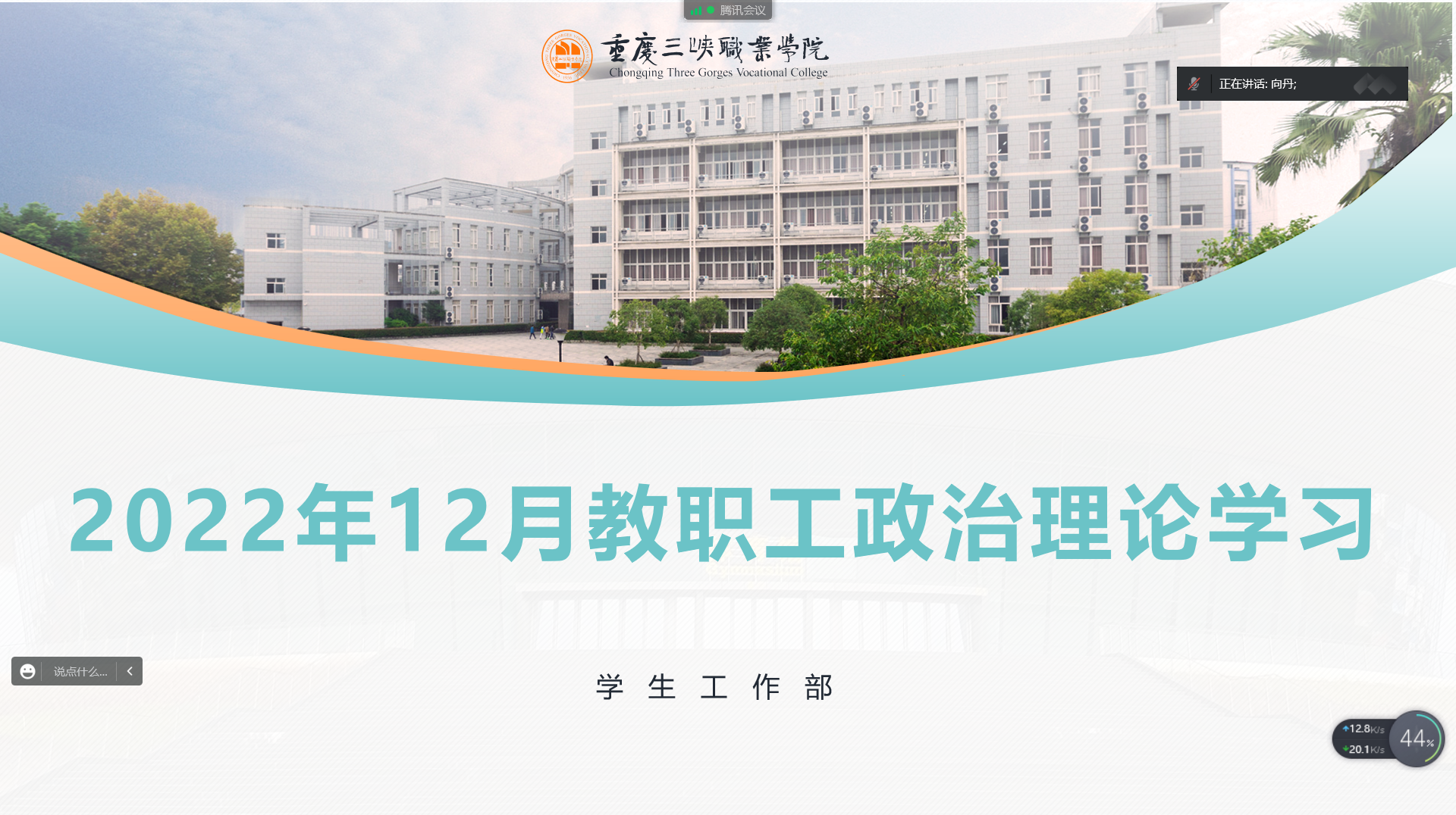 1229日,学生工作部采用腾讯会议线上学习的方式开展12月教职工政治理论学习,会议由学生处副处长彭钦主持,部门全体教职工参加。