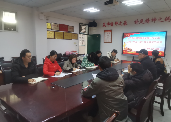 2月28日下午,人工智能学院党总支第三党支部在信科楼504会议室开展了1-2月“三会一课”及主题党日学习。会议由支部书记吴勇帑主持,支部11名教师党员参加。