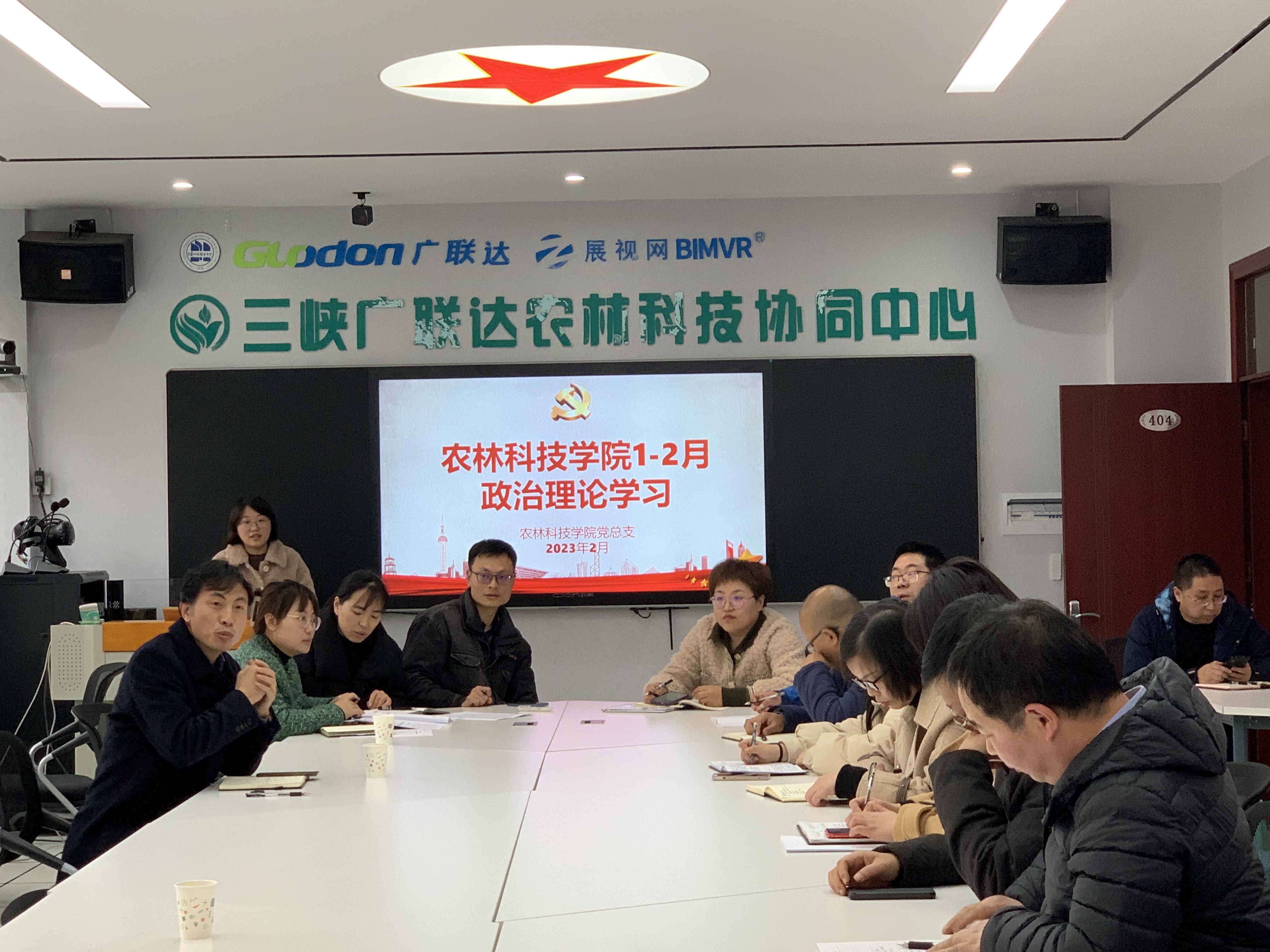 2023年2月28日,农林科技学院党总支在农林楼404开展1-2月份教职工政治理论学习,会议由党总支书记丁廷发主持。