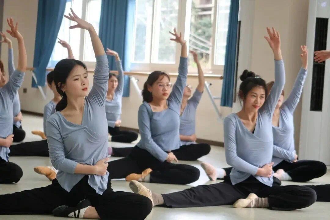 开课首日,还有形体艺术课在410形体室开课。形体老师从最基本的站姿、眼神到形态,再到如何摆手、抬腿、转身等仪态细节,给同学们做了详细的演示。在训练过程中,结合同学们的站姿、走姿、节奏和平衡感,尤其是头、肩、胯、腿等部位的协调,老师手把手演示和纠正,为以后舞蹈剧目排练打下良好的基础。