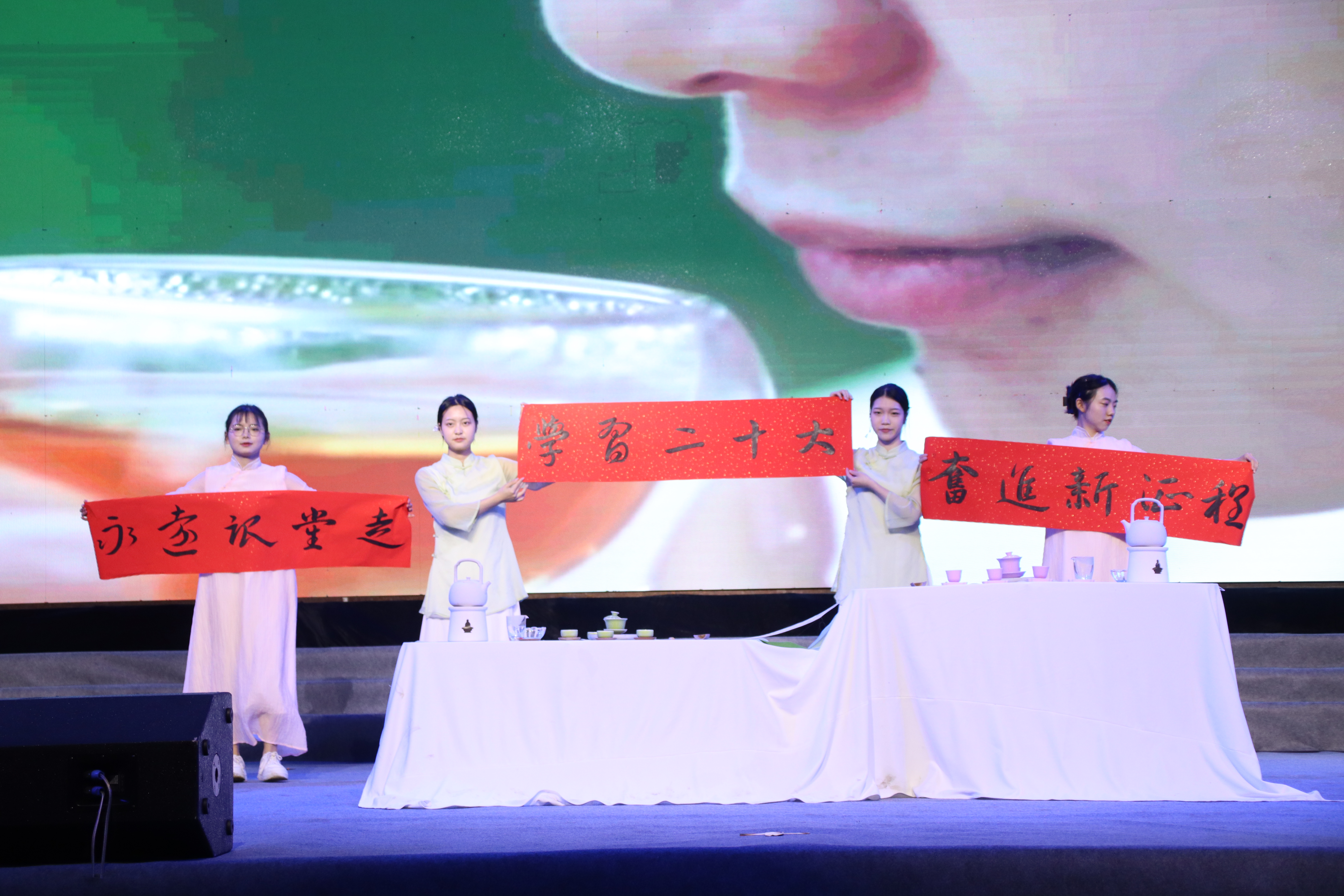 汇演紧紧围绕“学习二十大 青春心向党 建功新时代”这一主题开展,通过音乐剧、小品、合唱、民族舞蹈等等多种艺术形式,奏响了一曲又一曲青春之歌、青年之歌,展现我院大学生的青春风采和精神风貌,更诠释当代青年学子的文化自信、使命担当。节目中,有师生共同深情歌唱伟大祖国的《我和我的祖国》、有展现我院浓厚茶文化和书法文化底蕴的《一盏清茗》、有昂扬时代精神弘扬中华传统美德的《红色中国》等等精彩纷呈的节目。