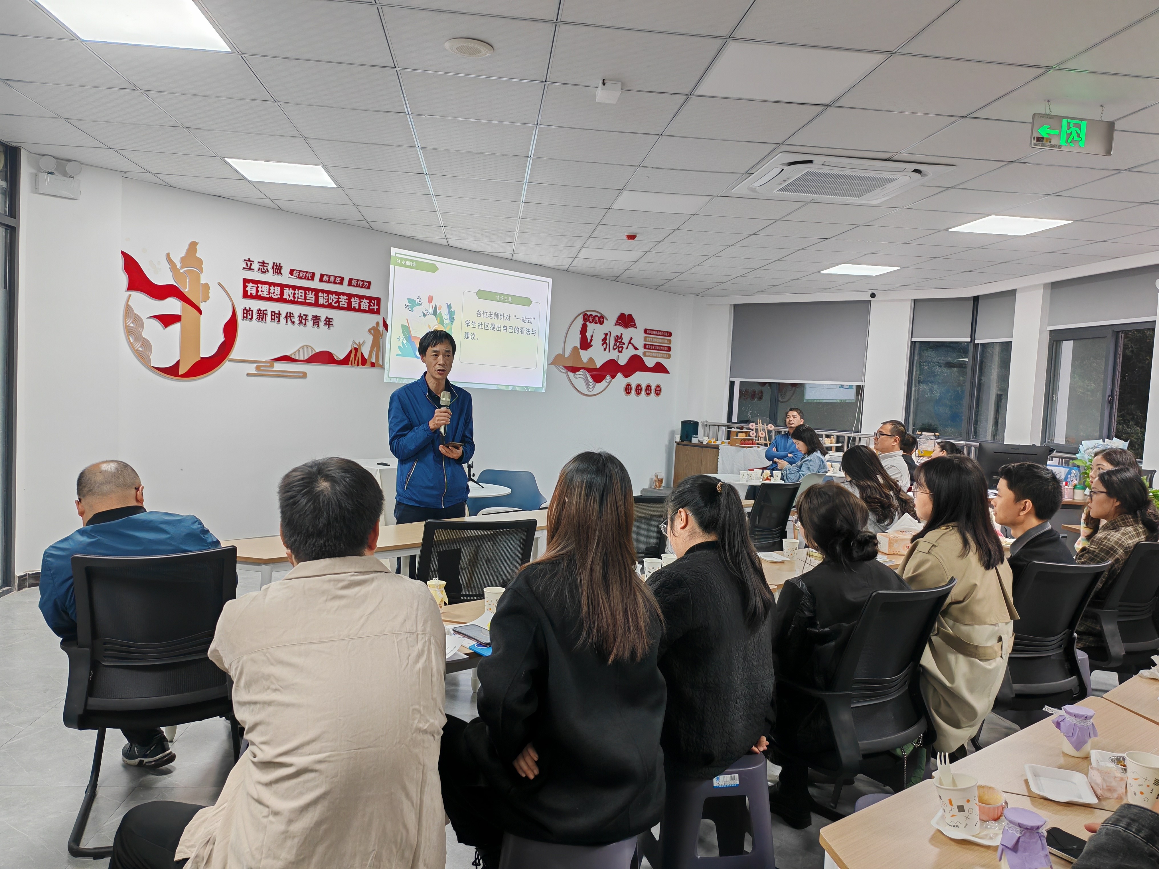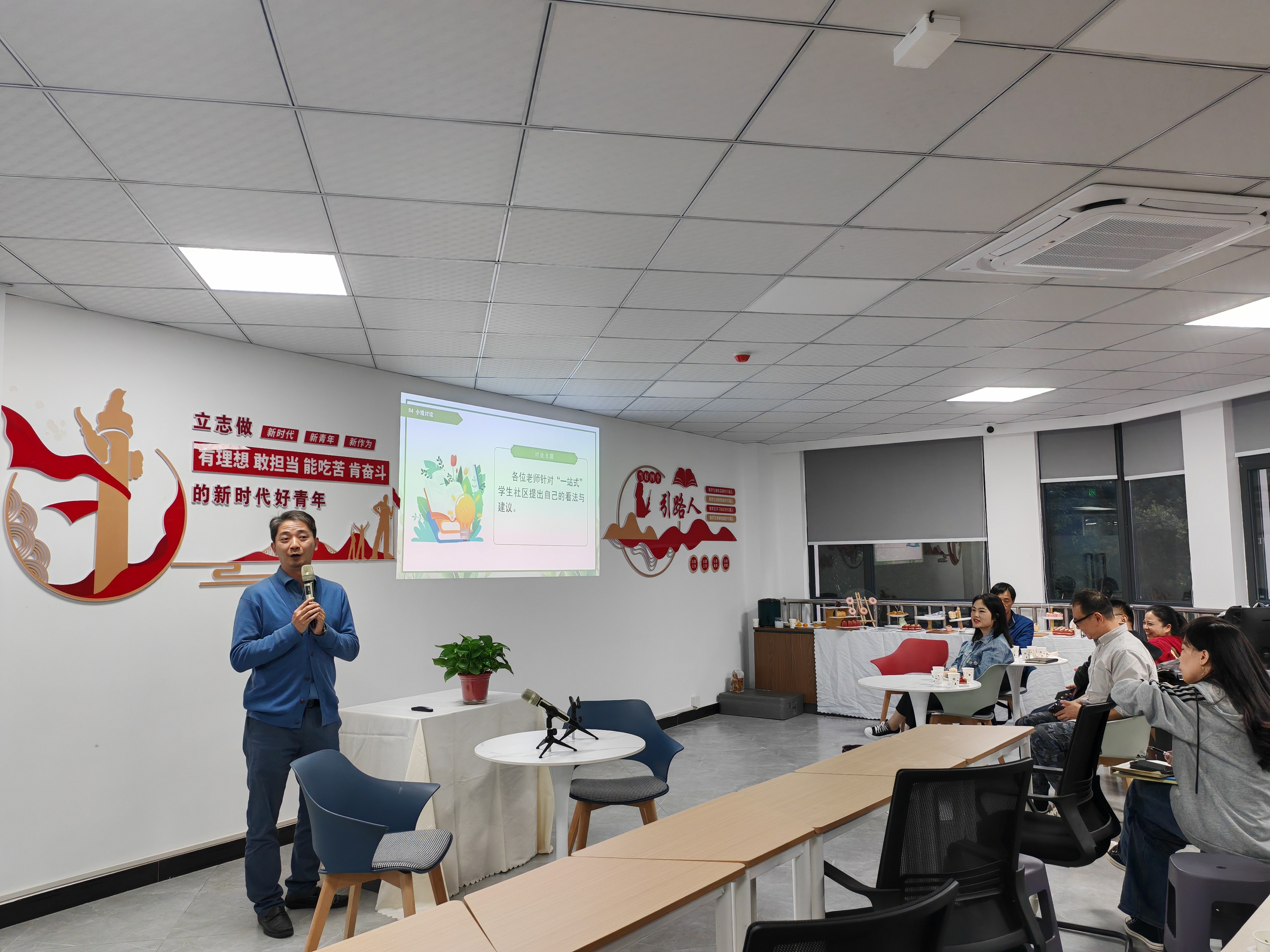 为了便于大家更好的发表自己的想法,让思想碰撞出不同的火花,活动设置了小组讨论环节,所有老师针对本次主题发表自己的观点。在经过激烈的讨论后,金博、邹建华、康学良和曾卓四位老师作为代表进行了简短的发言,每位老师都对“一站式”学生社区建设提出了很多极具启发性的观点与见解,也激发了更多的思考和创新。