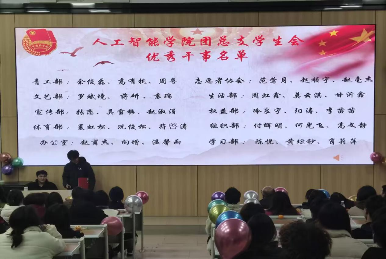 本次总结大会,是人工智能学院团总支学生会对本学期各项工作的总结和反思,也是对新一年工作的展望与部署,为后续开展工作打下良好的基础。通过此次总结大会,让我们明白要始终坚定如磐信心、保持清醒头脑、昂扬青春朝气、实干担当有为,在全面建设社会主义现代化国家、全面推进中华民族伟大复兴的新征程上绽放更加璀璨的青春光华。更让我们牢记习近平总书记的殷切嘱托,在火热的学习和实践中,争做有理想、敢担当、能吃苦、肯奋斗的新时代好青年,为党的事业奋笔书写青春篇章!为强国建设、民族复兴贡献青春力量!