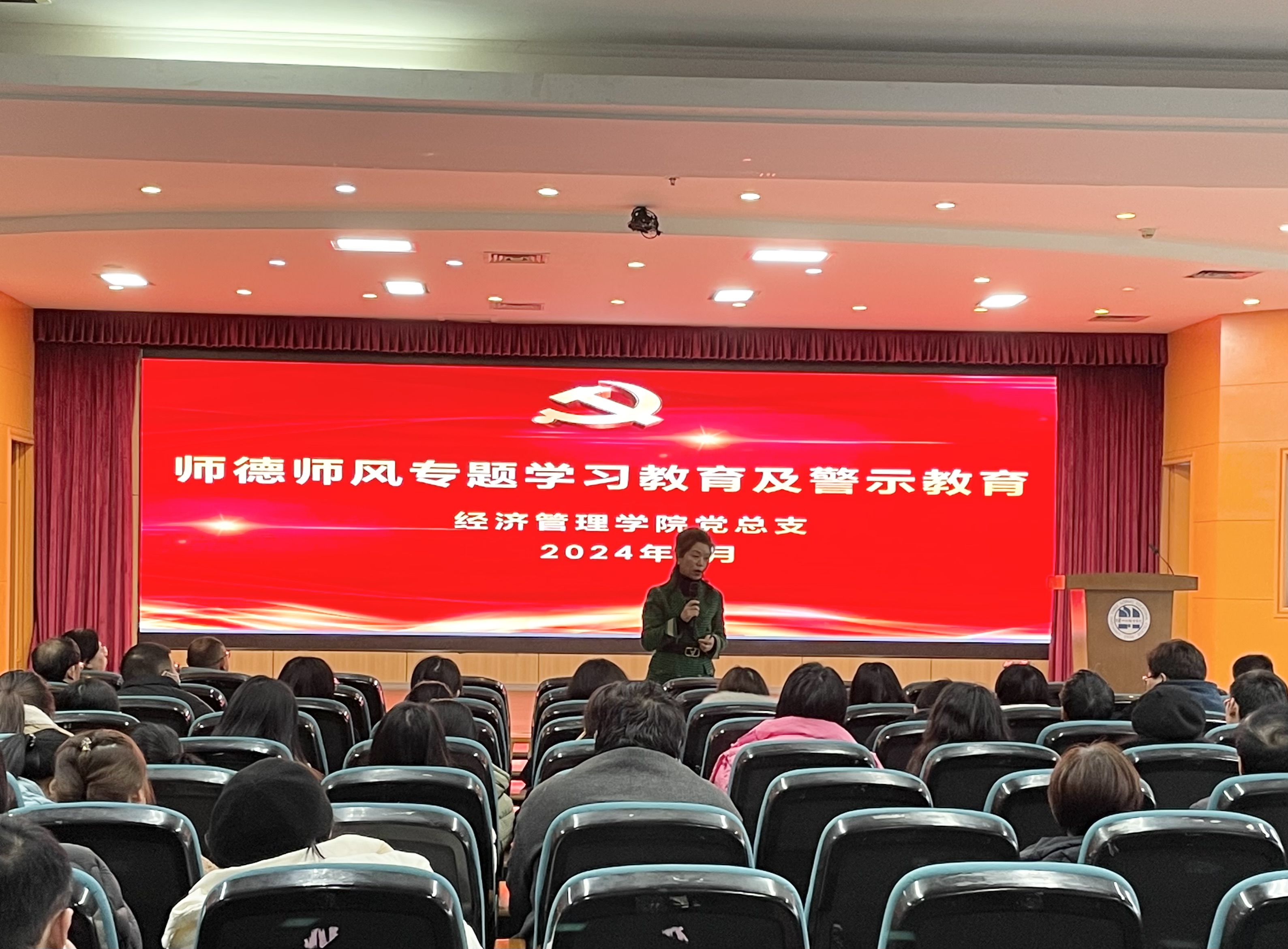 1月16日下午,经济管理学院在沙龙校区综合楼学术报告厅召开1月政治理论学习和师德师风警示教育大会,会议由党总支组织员李静主持,全体教职工参加本次学习。