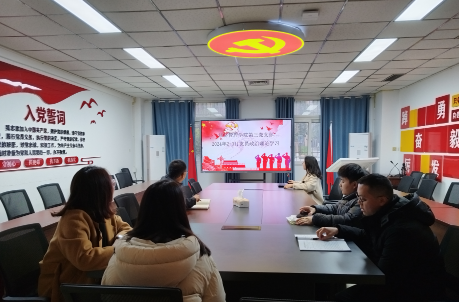 3月6日下午,经济管理学院党总支第三党支部在沙龙校区综合楼二楼会议室开展2-3月政治理论学习,会议由支部书记孙立芳主持,支部全体党员参加学习。