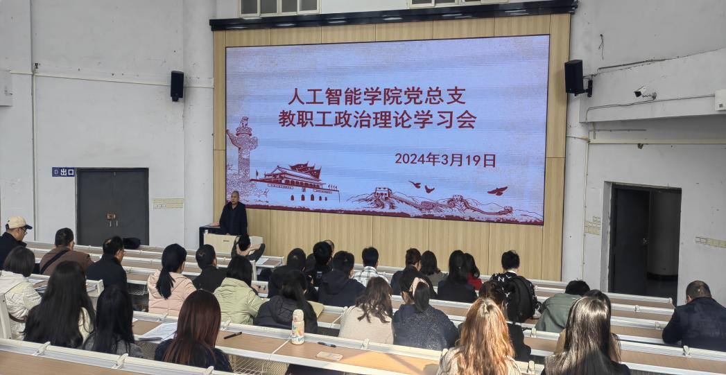 3月19日下午,人工智能学院党总支在信科楼220开展全院教职工2-3月政治理论学习教育专题会。会议由人工智能学院党总支书记、院长熊泽明主持,全院教职工50余人参加。
