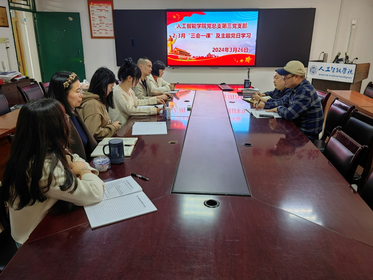 3月26日,人工智能学院党总支第三党支部在信科楼504会议室开展2-3月“三会一课”及主题党日学习。会议由支部书记吴勇帑主持,支部10名党员教师参加。