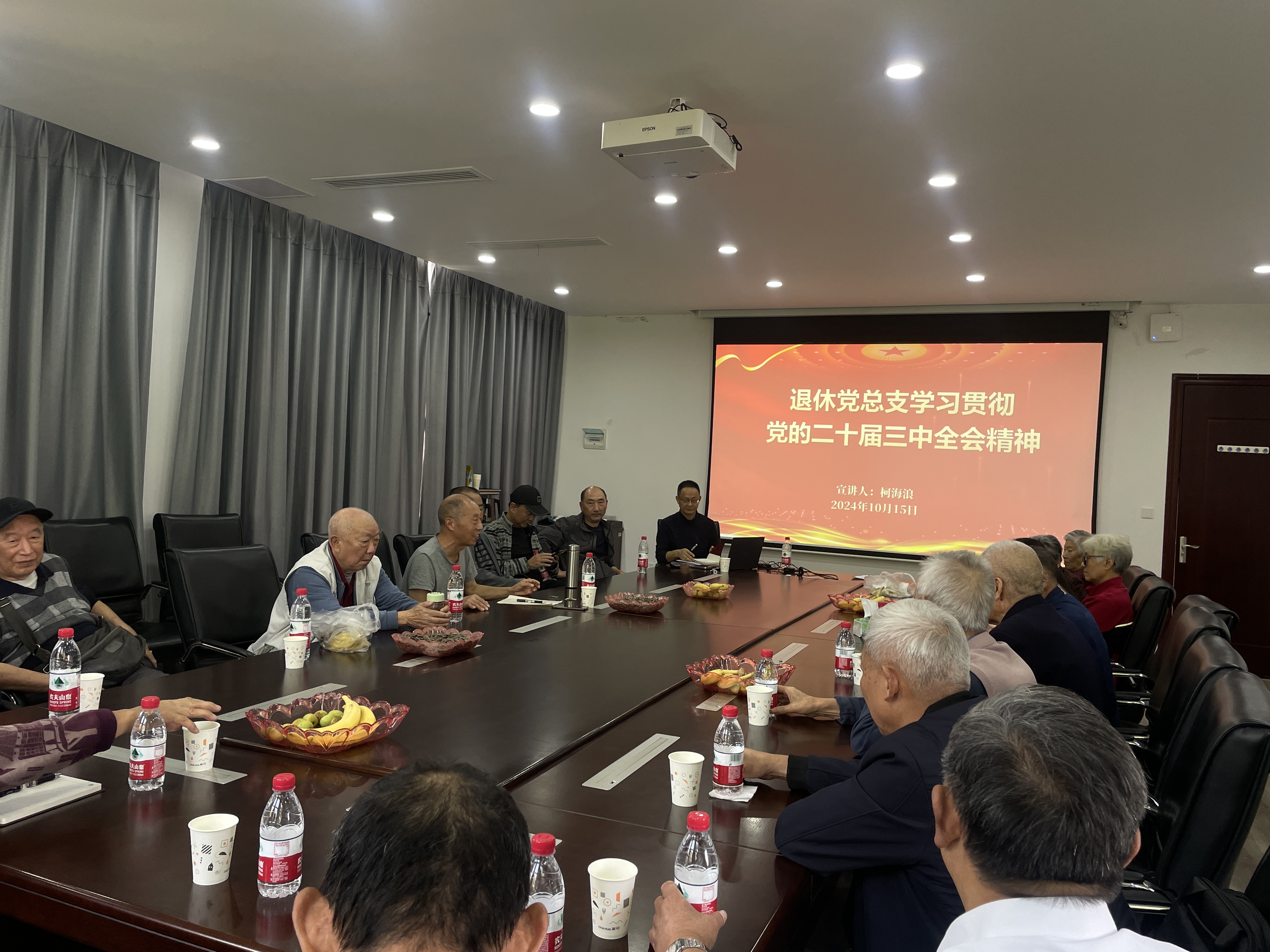 为深入学习贯彻党的二十届三中全会精神,引导退休党员完整准确把握党的二十届三中全会的核心要义和精神实质,自觉把思想和行动统一到党中央决策部署上来,10月15日上午,退休党总支召开党的二十届三中全会精神专题学习会。会议由党委委员、退休党总支书记柯海浪主持,退休党员代表参加会议。