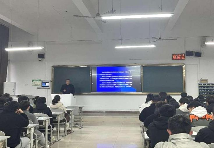 为深入学习贯彻习近平新时代中国特色社会主义思想,建设教育强国,人才强国,落实立德树人根本任务,12月11日,学院院长李炯光以《如何理解“坚持以高质量发展为主题,全面建设社会主义现代化国家”》为题,给2024级电子信息工程技术1班和2班的同学上了一堂内容丰富、形式多样的思想政治理论课。