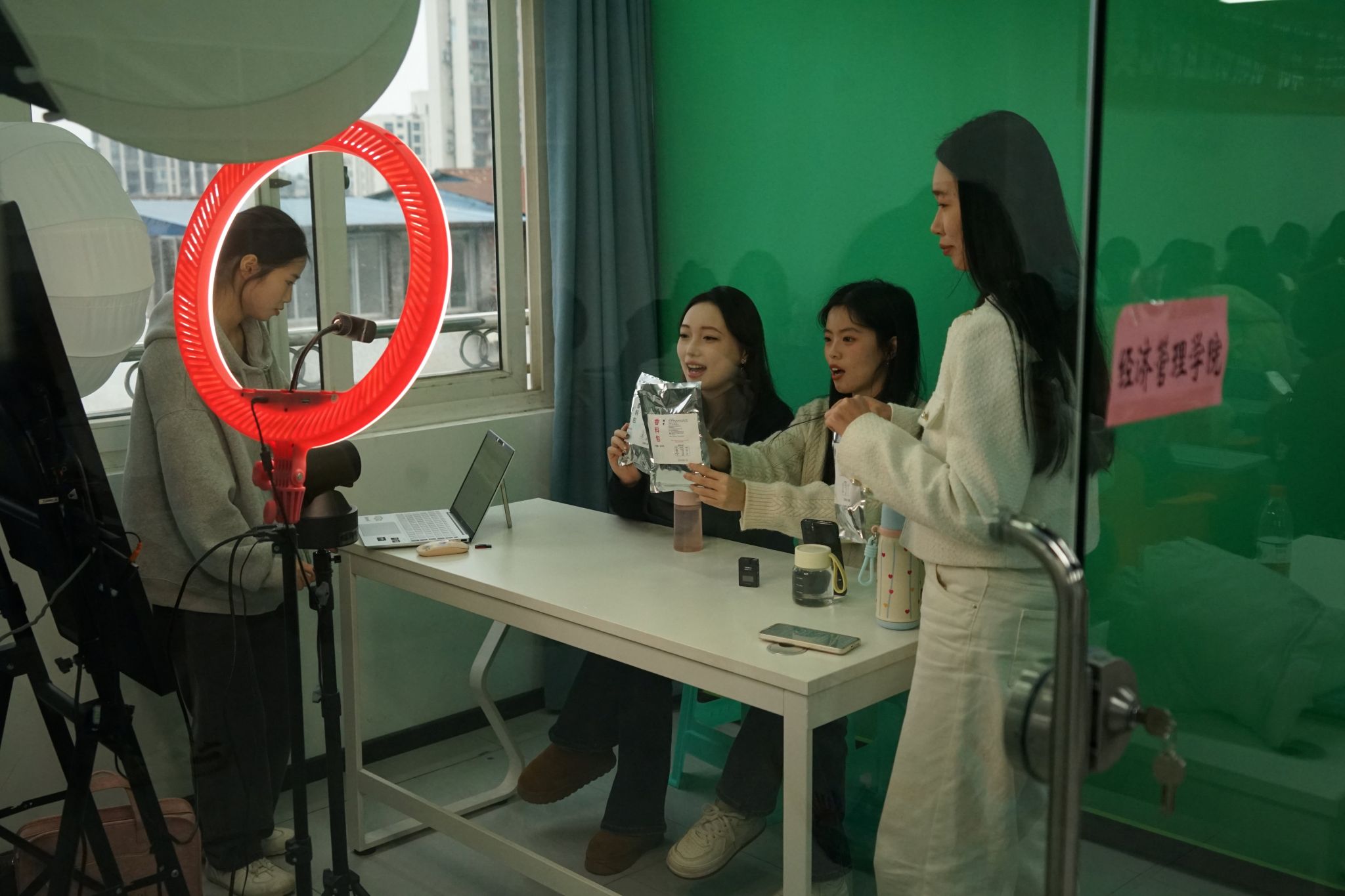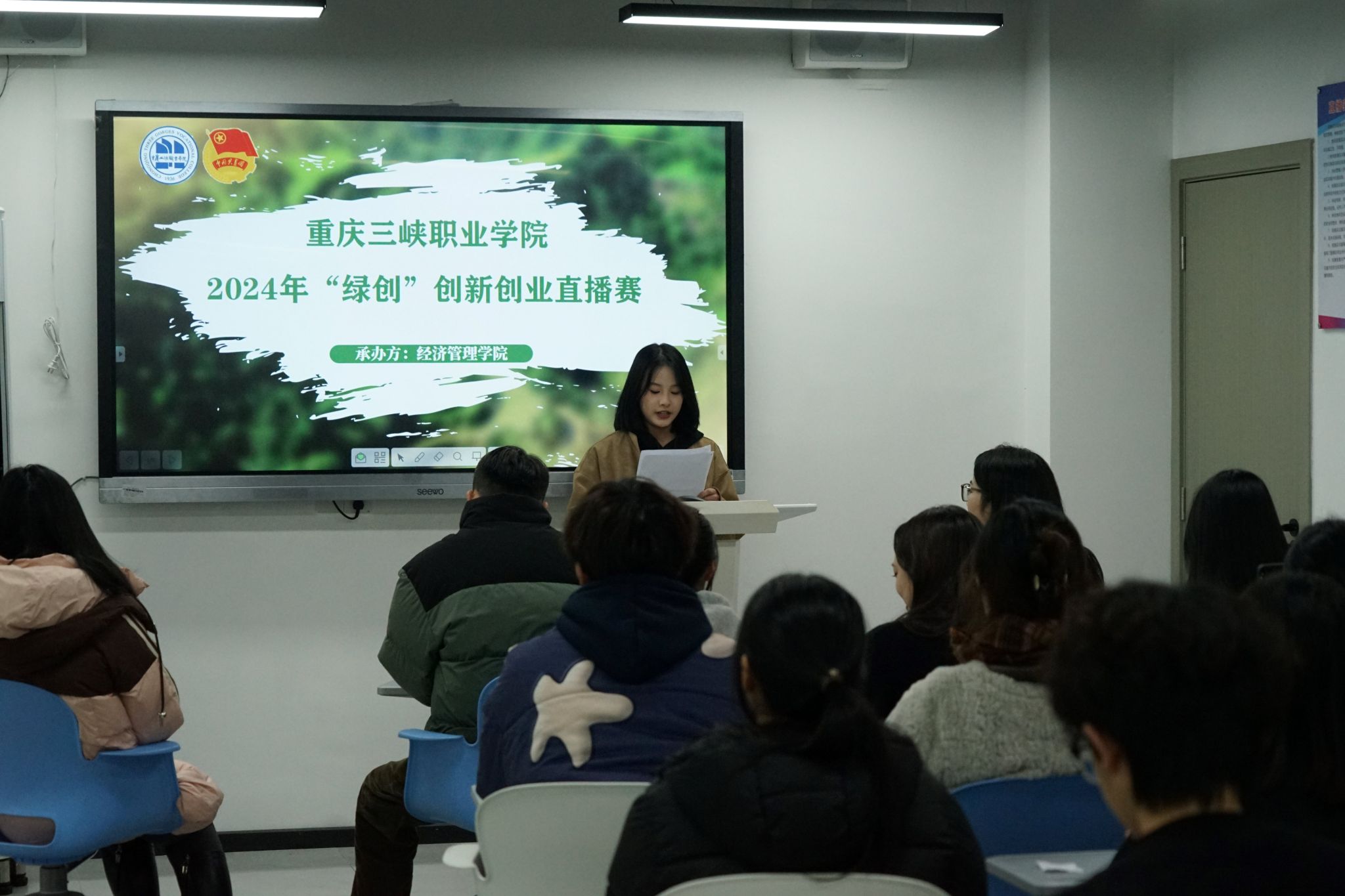为进一步培养广大青年学生的创新意识、提升创造能力,培养创业人才,丰富大学生的网络直播知识。12月12日下午,由共青团重庆三峡职业学院委员会主办,经济管理学院承办的“绿创”创新创业直播赛活动在沙龙校区综合楼701实训室顺利开展。党委学生工作部副部长、团委副书记彭钦、网络营销与直播电商专任教师赵香妹、网络营销与直播电商专任教师刘晓亮、经济管理学院团总支书记赵颖担任直播赛评委。