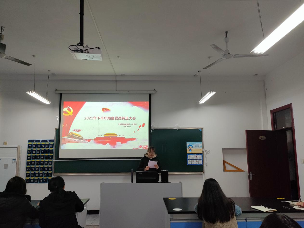 12月15日,农林科技学院党总支第一党支部于农林楼607教室召开预备党员转正大会。本次会议由支部书记邓燕红同志主持,支部全体党员参加。