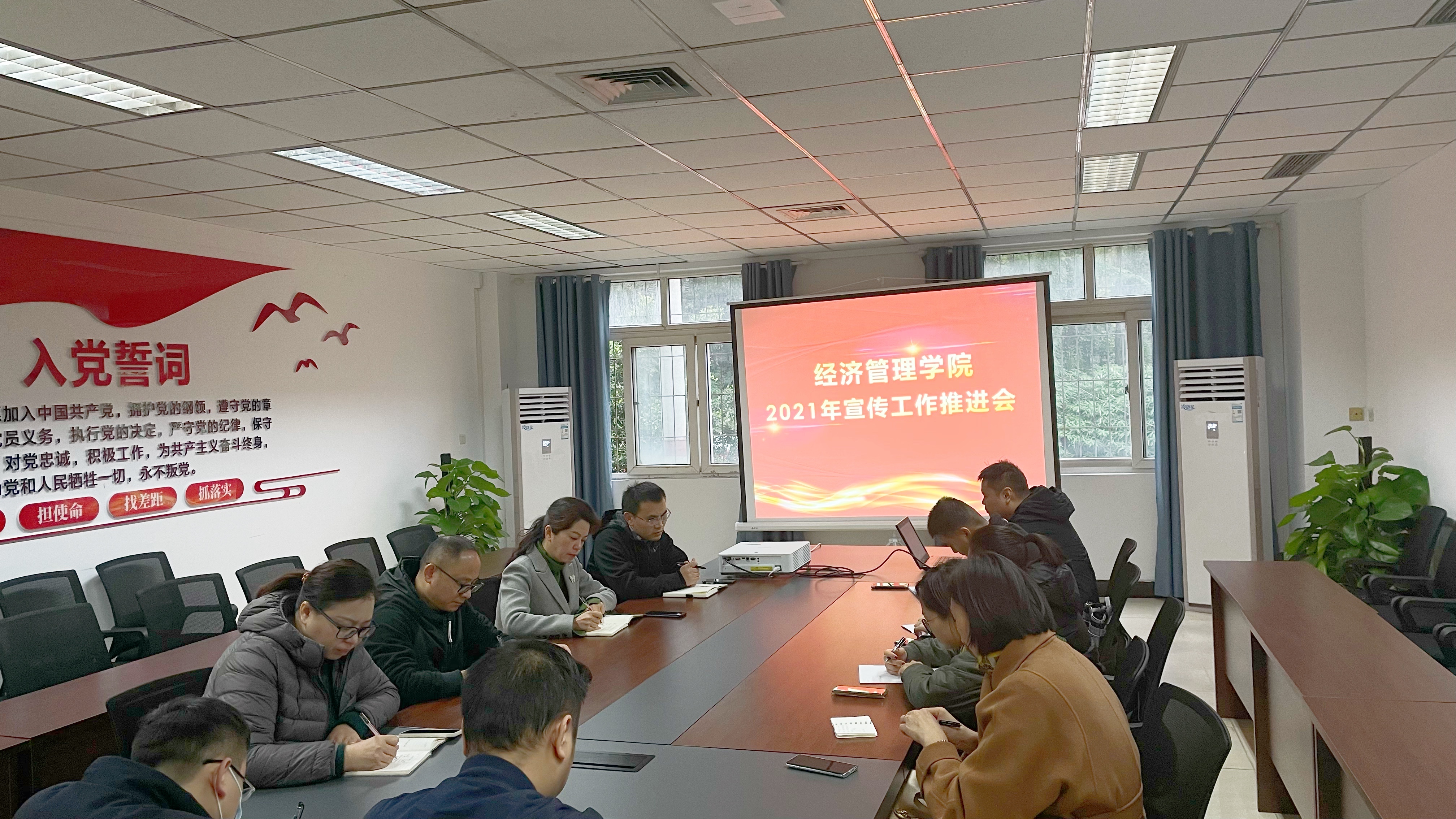 为进一步规范和加强经济管理学院宣传工作,及时有效的宣传经管学院履行学院责任的良好形象和创新专业发展的突出成果。11月24日上午,经管学院在沙龙校区综合楼2楼会议室召开了宣传工作推进会,经济管理学院党总支书记、院长赵琳,副书记张恩广,副院长陈现军,副院长潘多,总支委员、支部书记、支部宣传委员参加了会议,会议由赵琳主持。