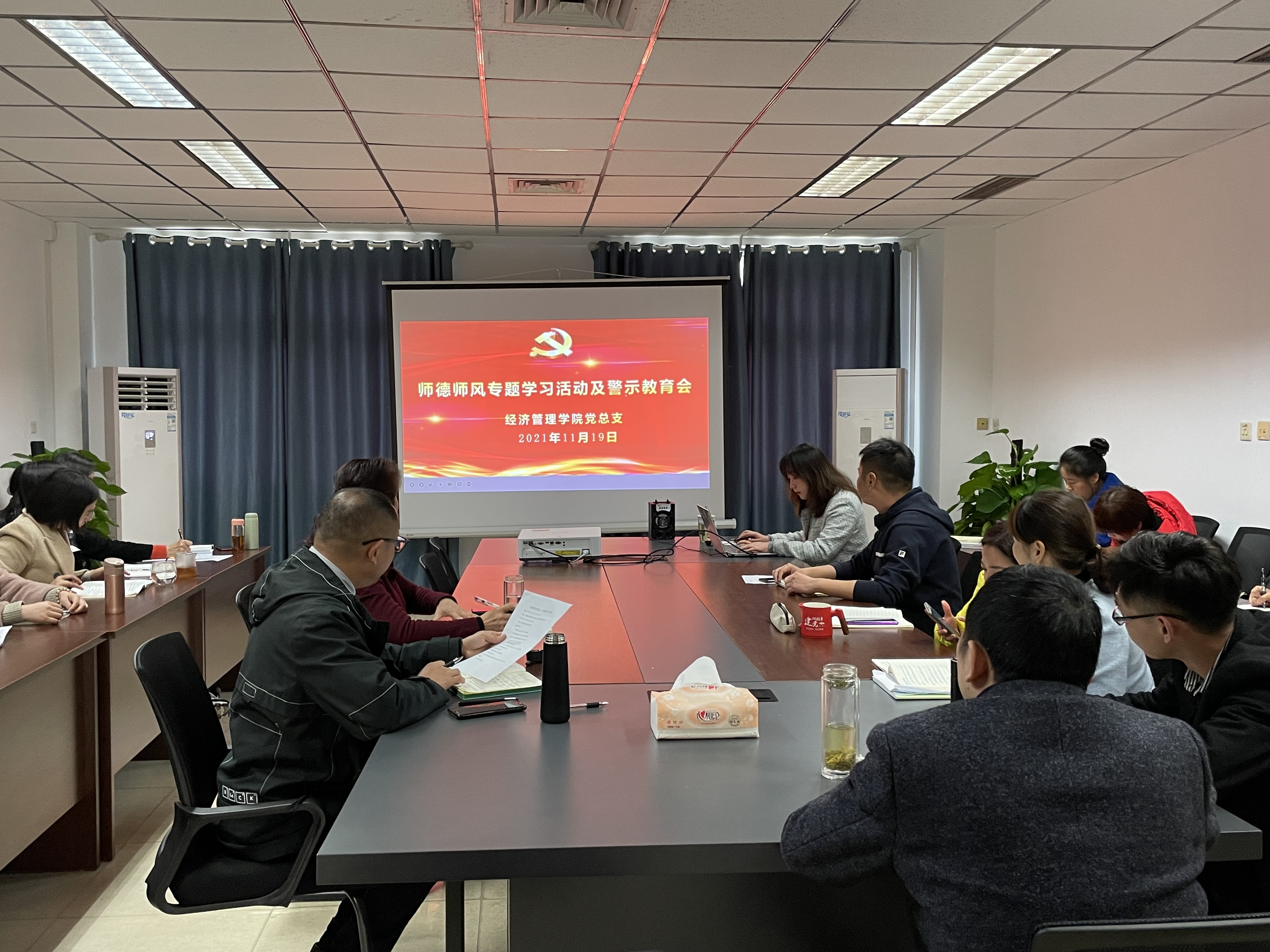 为深入开展党史学习教育,切实加强教师理想信念,打造师德高尚的教师队伍,推进经济管理学院教育工作内涵式发展。11月19日,经济管理学院全体教职工在沙龙校区综合楼二楼会议室组织师德师风专题学习及警示教育集中学习,会议由经济管理学院党总支书记、院长赵琳主持。