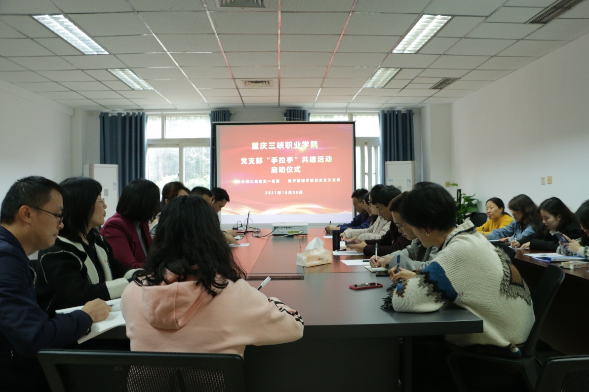 为增进机关部门与二级学院的沟通交流,充分发挥党支部的战斗堡垒作用和党员的先锋模范作用,促进党建工作与学生管理工作“双提升”。本着“围绕中心、服务师生、优势互补、共同提高”的原则,经济管理学院党总支第三支部与机关二总支一支部经过共同协商,就党支部开展共建活动达成共识。10月28日下午三点,经济管理学院党总支第三党支部与机关二总支一支部“手拉手”共建活动启动仪式在沙龙校区会议室举行。参加启动仪式的有机关二总支副书记陶毅、经济管理学院党总支书记赵琳以及两个支部的党员老师20余人,启动仪式由经济管理学院副书记张恩广主持。